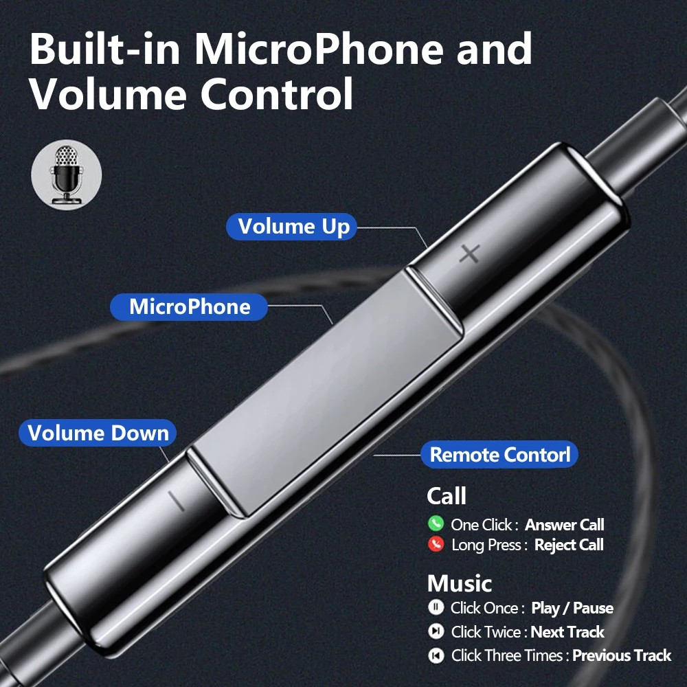 Micrófono incorporado y control de volumen: Los botones remotos de los auriculares tipo C le permiten reproducir/Pausar canciones, omitir canciones siguientes/anteriores sin levantar el teléfono. Acceda fácilmente a los controles de volumen en cualquier momento y lugar para responder y colgar llamadas con facilidad. Los auriculares tipo C tienen un micrófono de alta definición incorporado para brindarle una excelente experiencia de llamada.