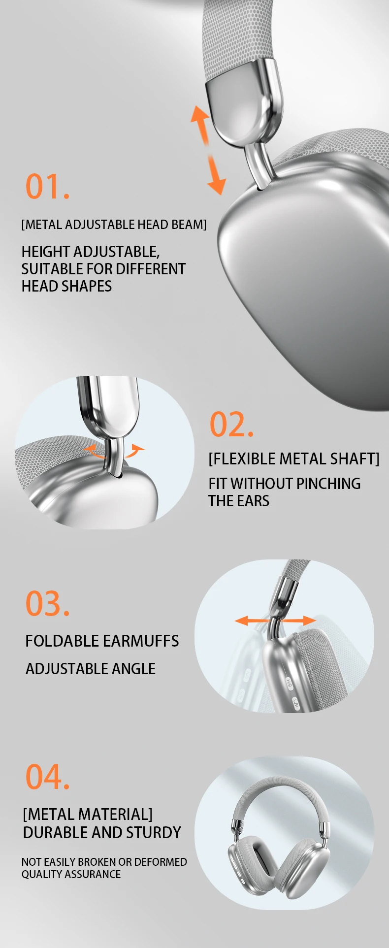 Auriculares de calidad de sonido HIFI, auriculares inalámbricos plegables de Metal Bluetooth con micrófono HD, auriculares para juegos con reducción de ruido para iPhone