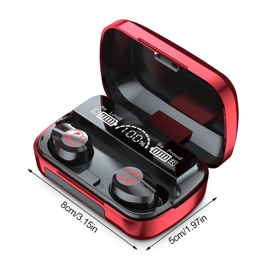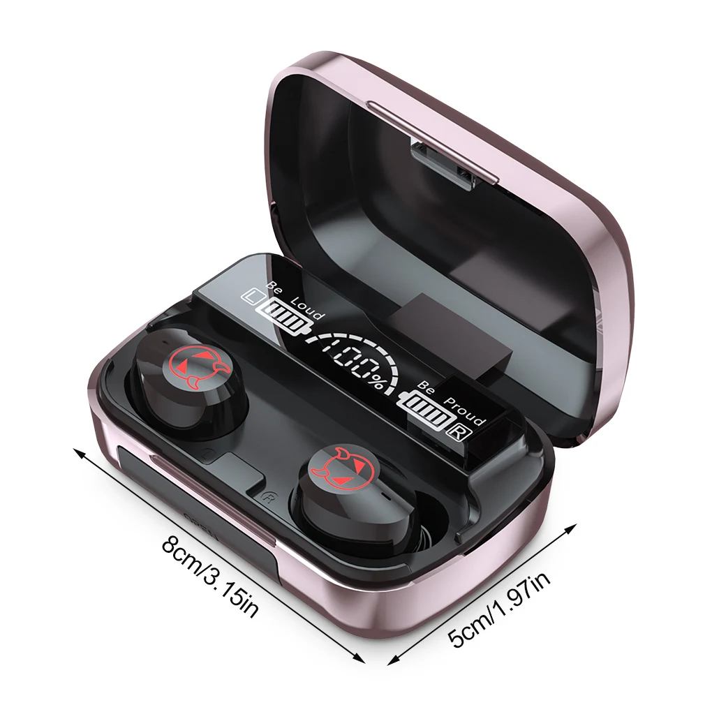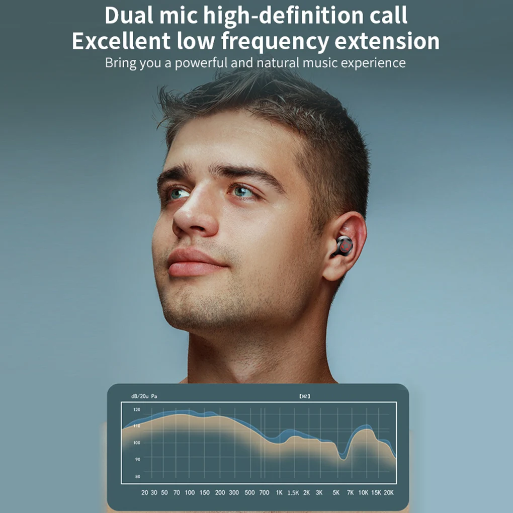 Pantalla digital y resistente al agua: este tipo de auriculares está diseñado con una pantalla digital que es conveniente para leer la cantidad eléctrica y cargar a tiempo. Y los auriculares son impermeables IPX6, puedes pedir sin preocupaciones.Recargable y portátil: los auriculares tienen una batería incorporada, que se puede usar durante mucho tiempo después de cargarse completamente, el estuche de carga funciona aproximadamente 10 veces. Los auriculares son fáciles de almacenar y transportar debido a su tamaño pequeño y peso ligero.Manos libres: hace deporte puede responder cuando conduce o las llamadas fácilmente, admite llamadas y control de voz, libera sus manos y garantiza su seguridad que hace su vida más conveniente.Cancelación de ruido: puede usar el auricular por separado, lo que le proporciona un efecto de sonido estéreo de 360 ° y reduce la pérdida, brindándole una buena experiencia auditiva.Inalámbrico y de baja latencia: los auriculares adoptan tecnología V5.1 compatible con Bluetooth, lo que garantiza una conexión estable y una transmisión conveniente, y el diseño de baja latencia garantiza un buen rendimiento.Especificación: