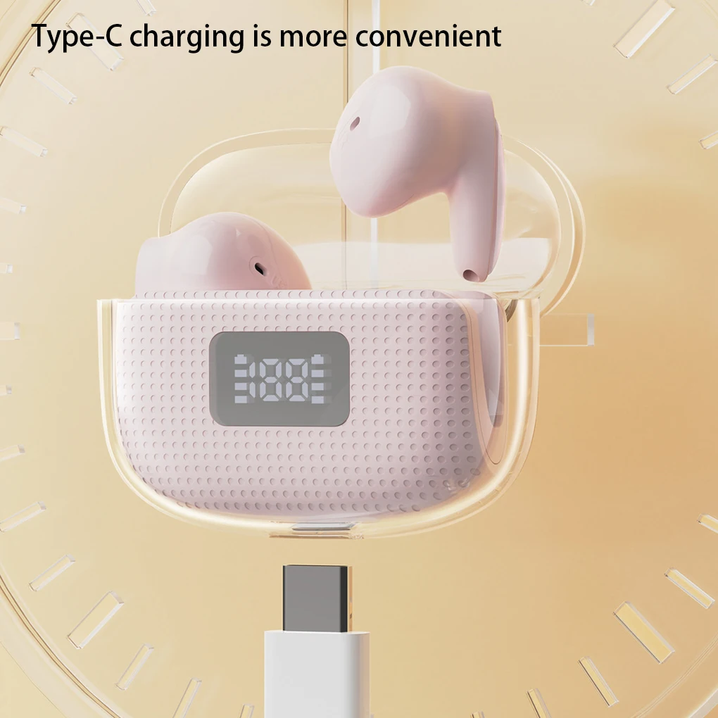 Batería de larga duración: La duración de un solo uso es de aproximadamente 5 horas, combinada con un contenedor de carga de gran capacidad, lo que le permite escuchar música y mantener un día completo de duración de la batería sin presión.