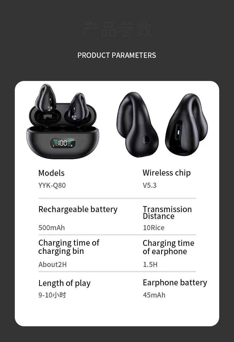 Auriculares de conducción ósea con Clip, sonidos envolventes LED, inalámbricos, Bluetooth 5,3, auriculares con reducción de ruido, auriculares deportivos