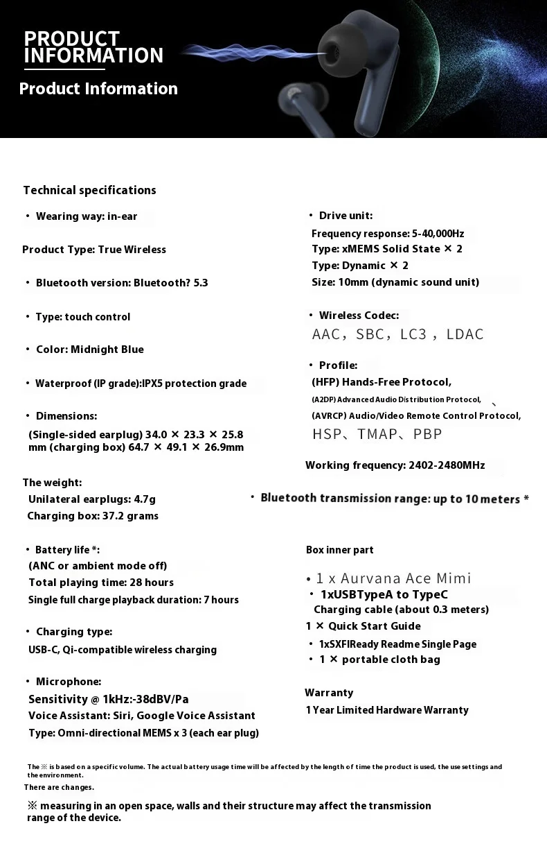 Tiempo de reproducción único y completamente cargado: 7 horas
