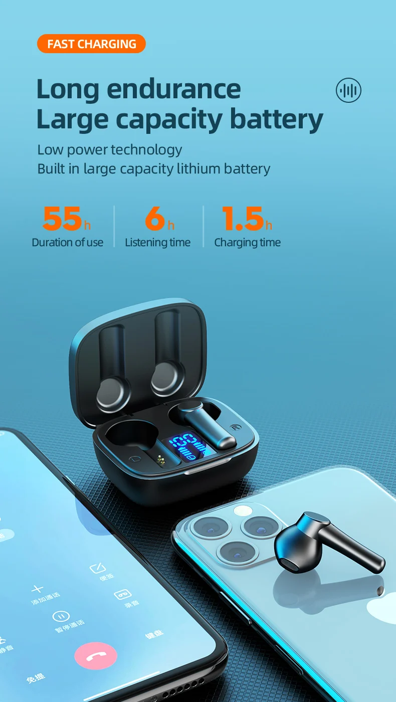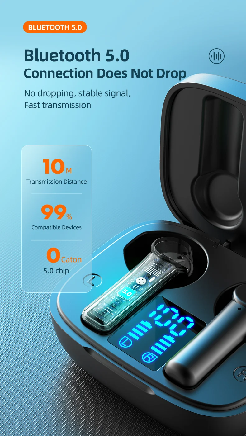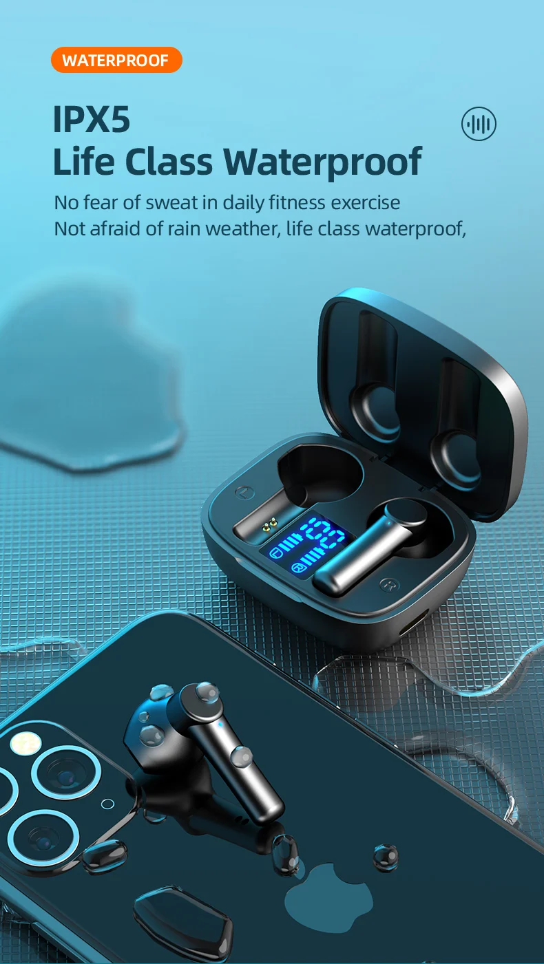 Comprar Auriculares deportivos con Bluetooth 5,0, dispositivo de audio con pantalla LED, micrófono, caja de carga, 9D, impermeable, inalámbrico, para exteriores