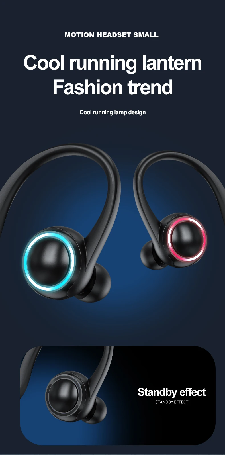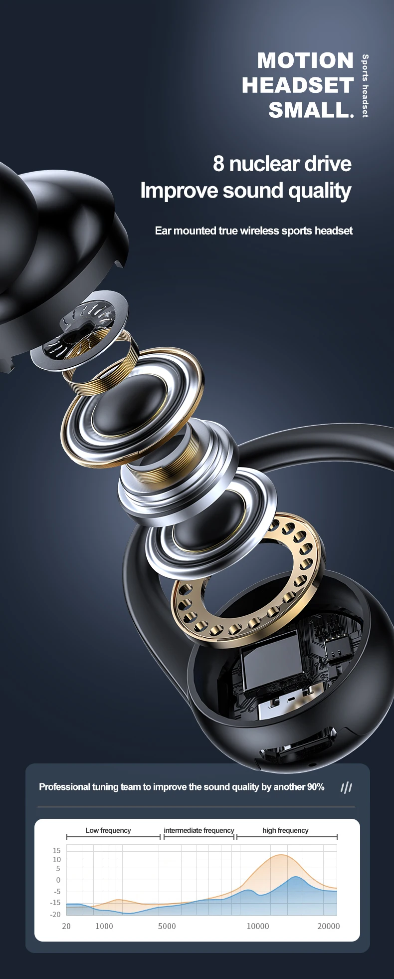 Comprar Auriculares deportivos inalámbricos con Bluetooth 5,2, audífonos de negocios con cancelación de ruido, impermeables, colgantes, de una sola oreja