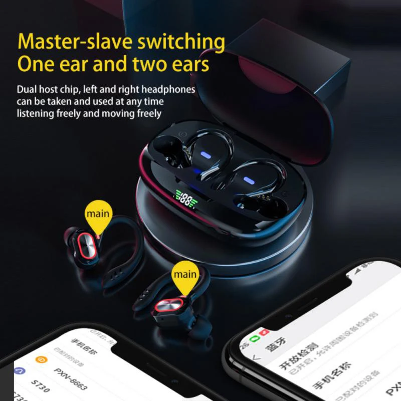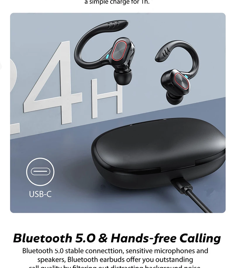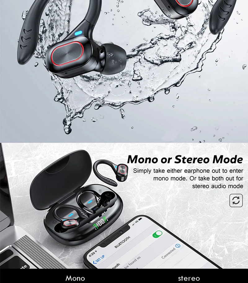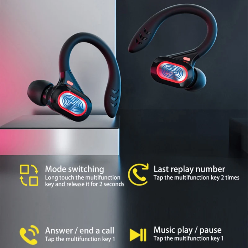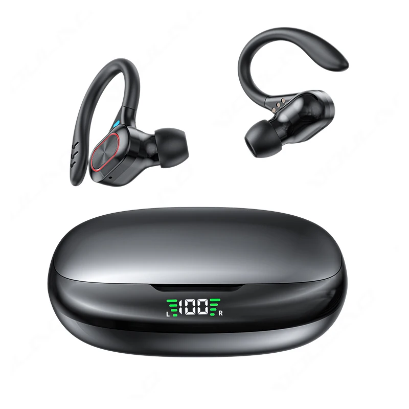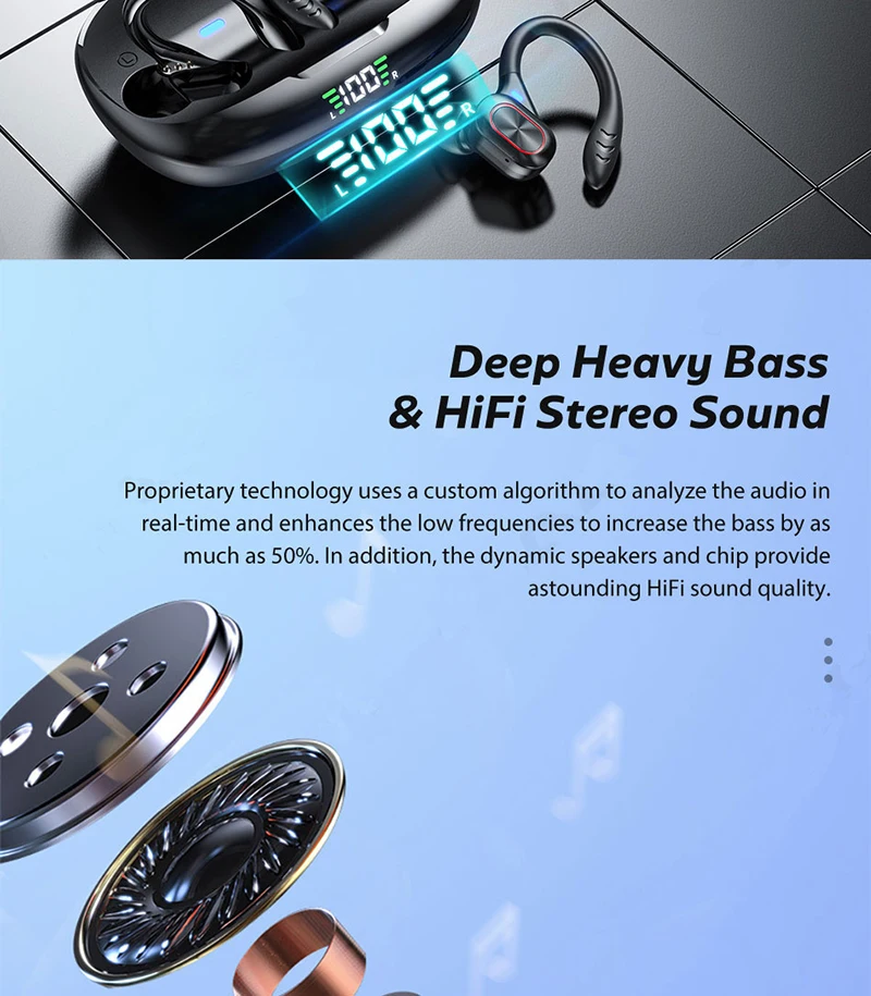 Comprar Auriculares deportivos inalámbricos con Bluetooth y micrófono, audífonos impermeables con ganchos para las orejas y Control táctil, auriculares de música estéreo HiFi con pantalla LED