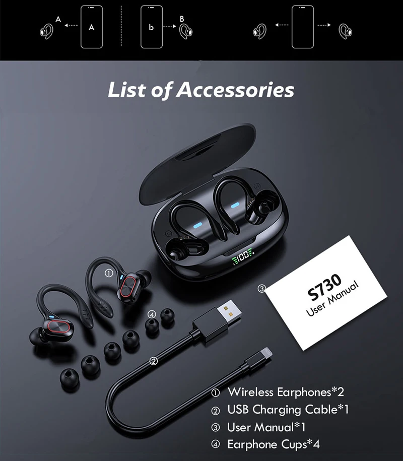 1 auriculares Bluetooth S730 TWS (izquierda y derecha)