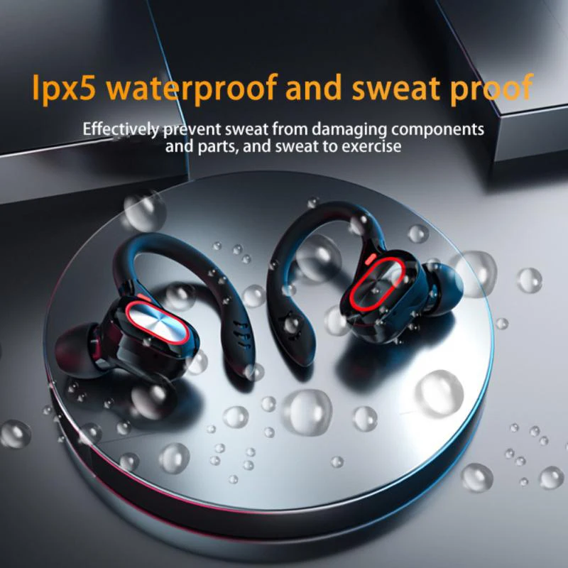 Comprar Auriculares deportivos inalámbricos con Bluetooth y micrófono, audífonos impermeables con ganchos para las orejas y Control táctil, auriculares de música estéreo HiFi con pantalla LED