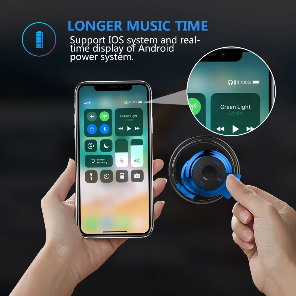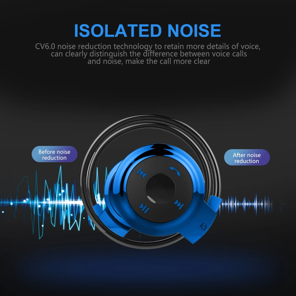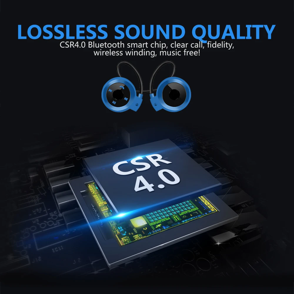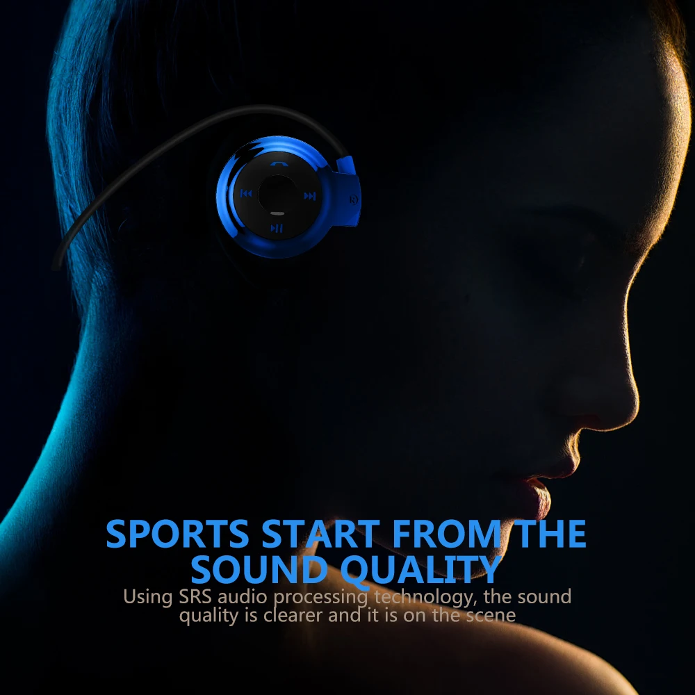 Comprar Auriculares deportivos inalámbricos compatibles con Bluetooth, auriculares estéreo, reproductor de música Mp3, auriculares con ranura para tarjeta Micro SD, micrófono manos libres