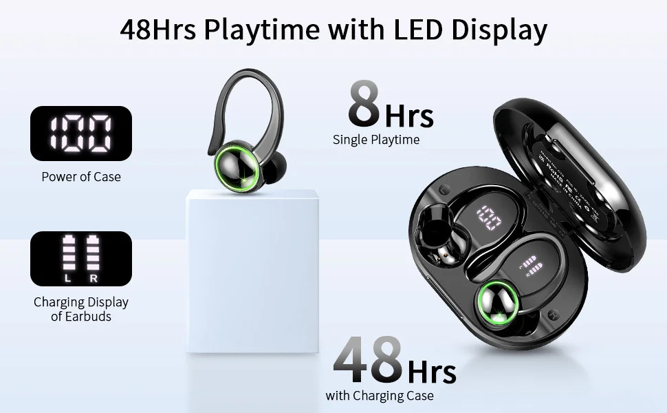 【 48 horas de duración de la batería con ESTUCHE DE carga】: El auricular Bluetooth puede durar 8 horas de reproducción con una sola carga y proporciona 40 horas adicionales de reproducción con estuche de carga.