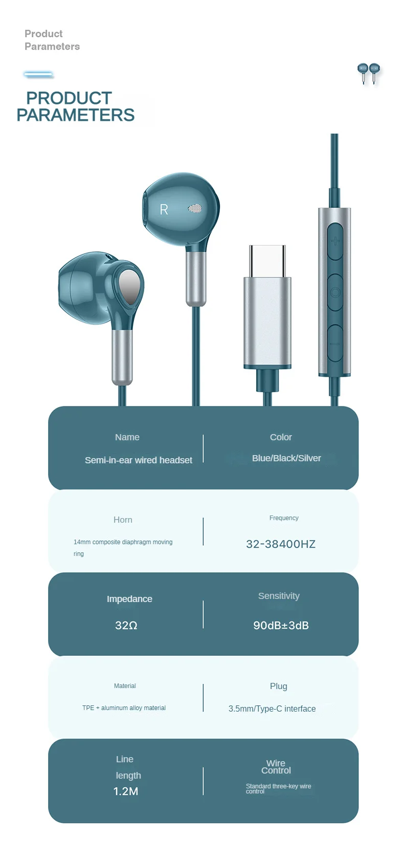 Auriculares digitales de 32 bits 9D Supergraves tipo C y 3,5mm, auriculares intrauditivos con bobina móvil de 14mm, auriculares magnéticos BES/DAC para jugadores con micrófono HD
