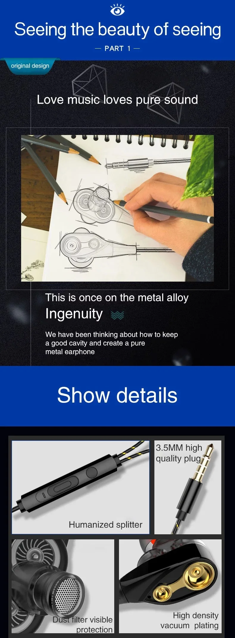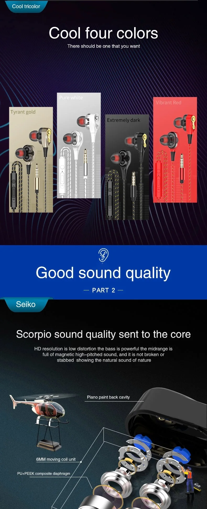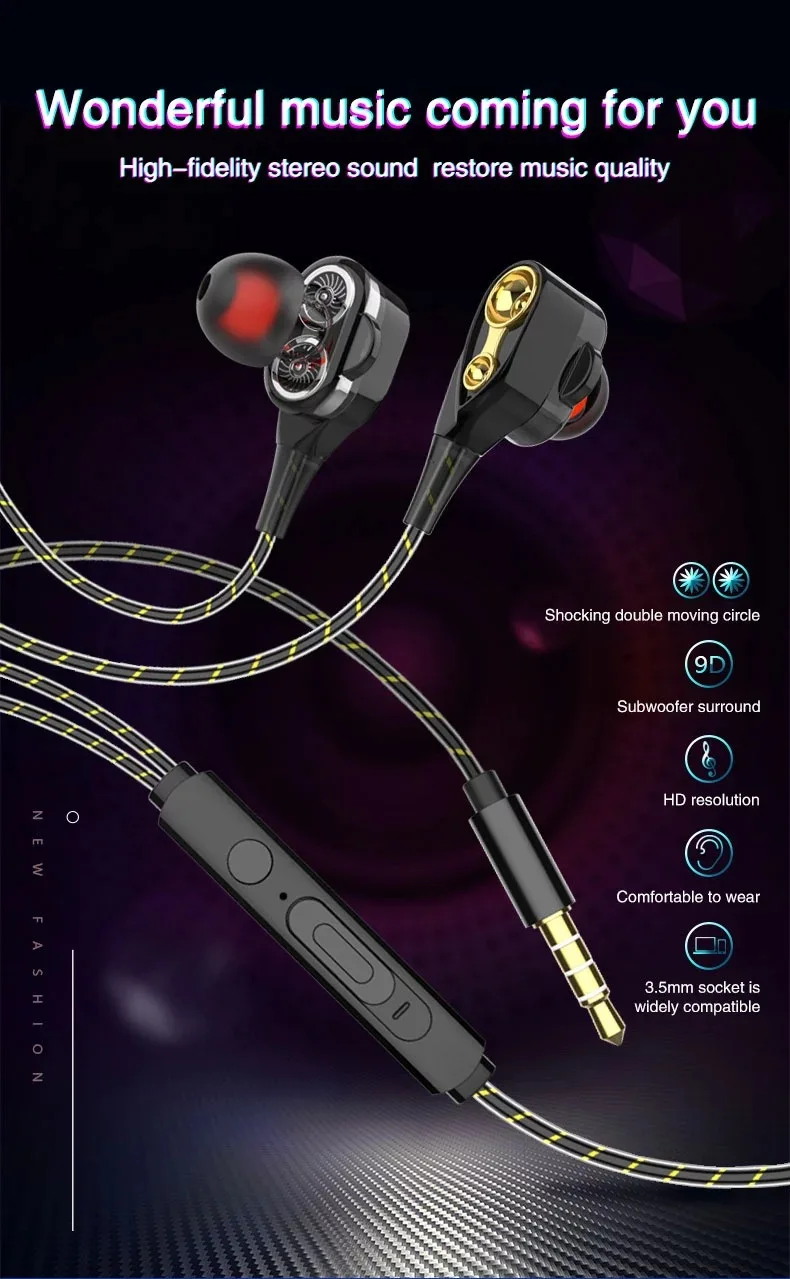 Nombre del producto: Dinámico dual atado con alambre Auriculares