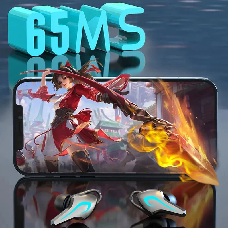 Comprar Auriculares estéreo inalámbricos con Bluetooth 5,2, cascos deportivos con cancelación de ruido, alta fidelidad, 65MS, baja latencia