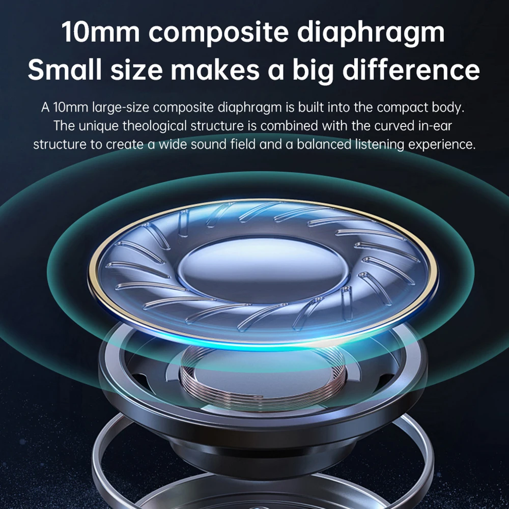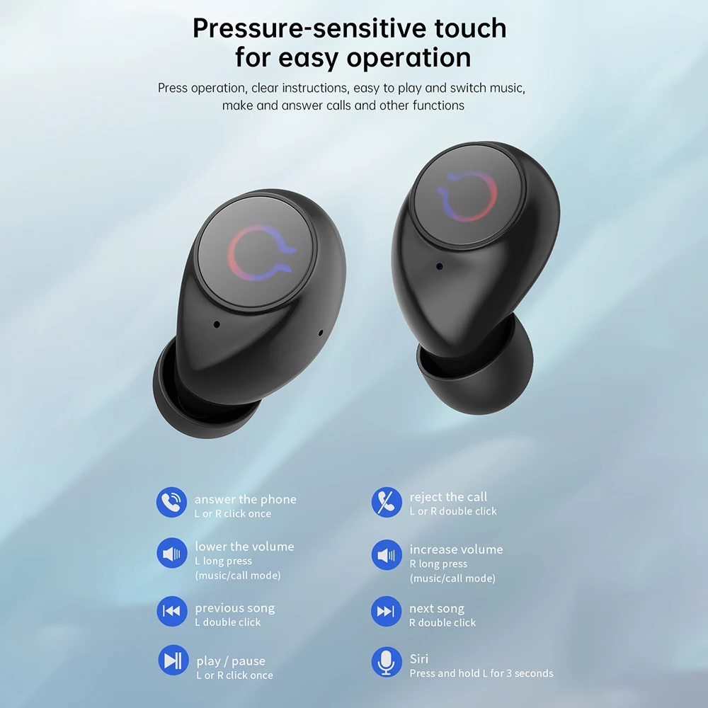 10. Auriculares táctiles a presión, fáciles de operar, pulsar, reproducir y Cambiar música, hacer y responder llamadas y otras funciones.