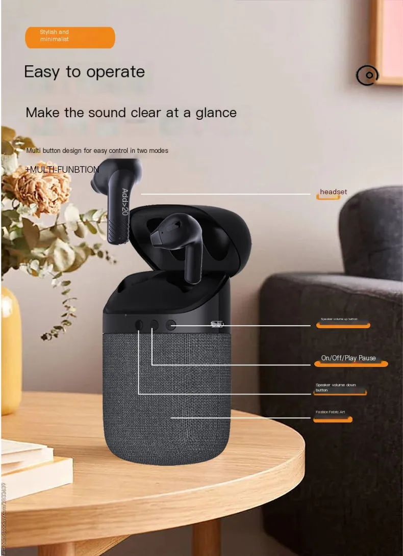 Comprar Auriculares inalámbricos 2 en 1 con Bluetooth 5,3, miniaudífonos intrauditivos para deportes al aire libre, sonido de graves HiFi, altavoz portátil