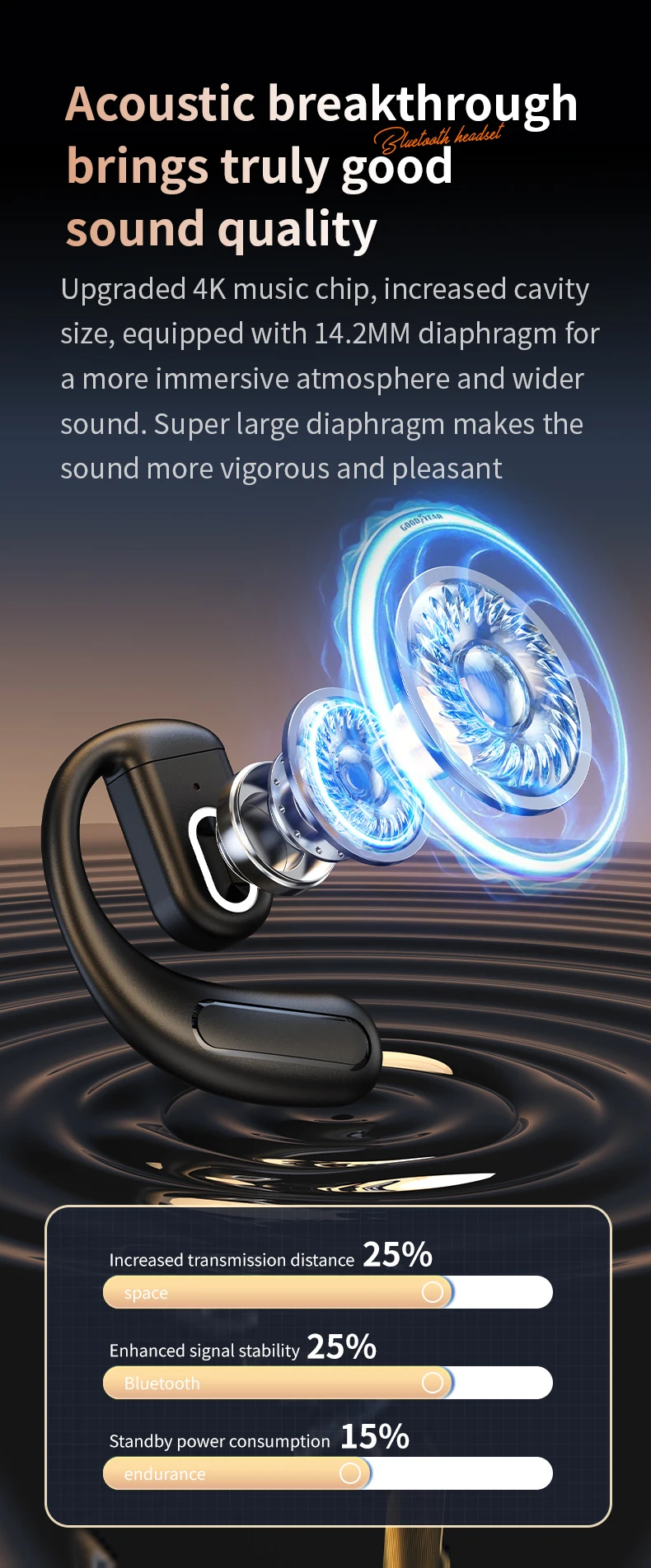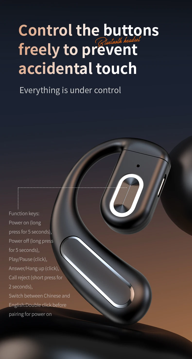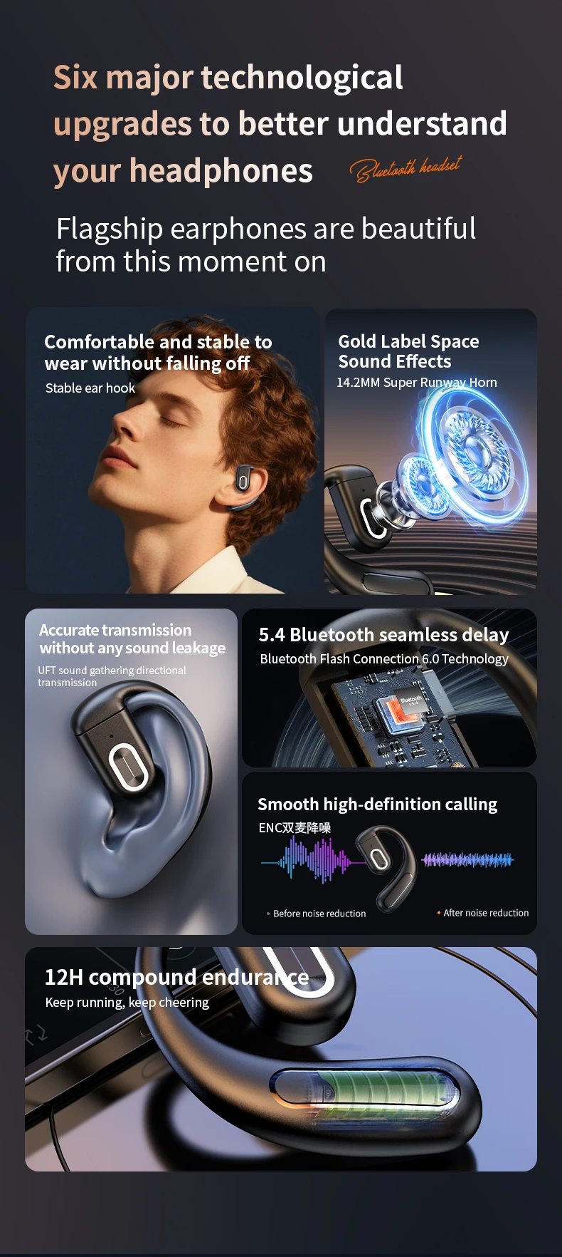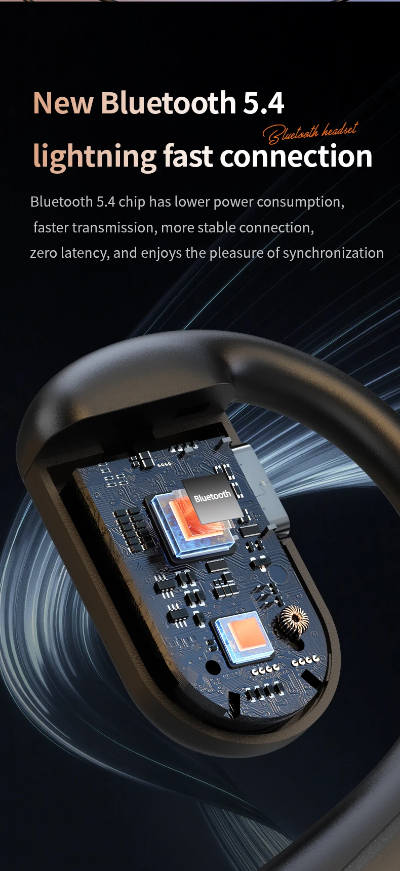Auriculares inalámbricos abiertos Z70 Bluetooth 5,4 deportes negocios música gancho para la oreja 180 ° Auriculares izquierdo y derecho con ajuste de rotación