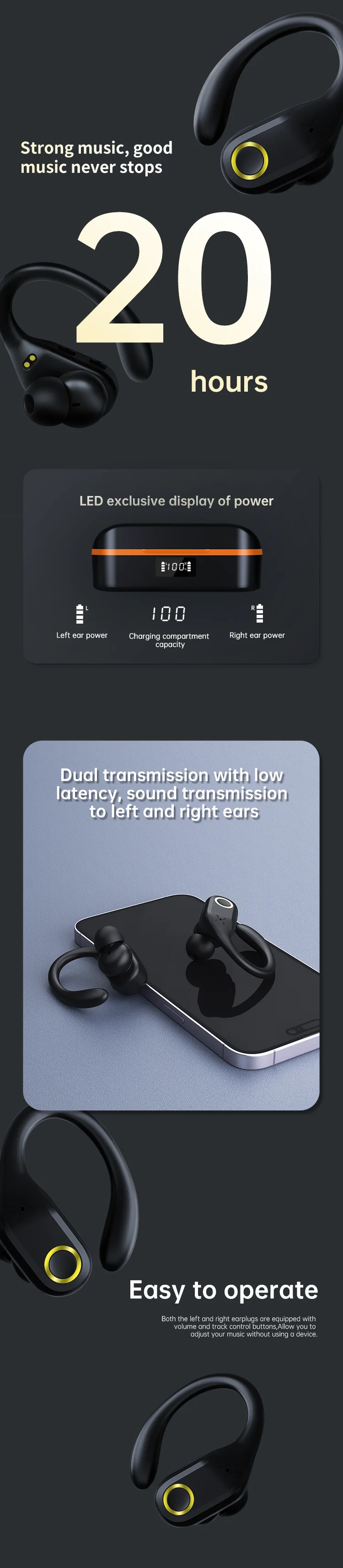 【Emparejamiento y control sencillos】Emparejamiento en un solo paso, emparejamiento sin complicaciones con teléfonos iOS/Android, computadora portátil a través de conexión Bluetooth.Ambos lados de los auriculares pueden controlar el volumen, las pistas, las llamadas o la asistencia de Siri/voz sin levantar el teléfono.