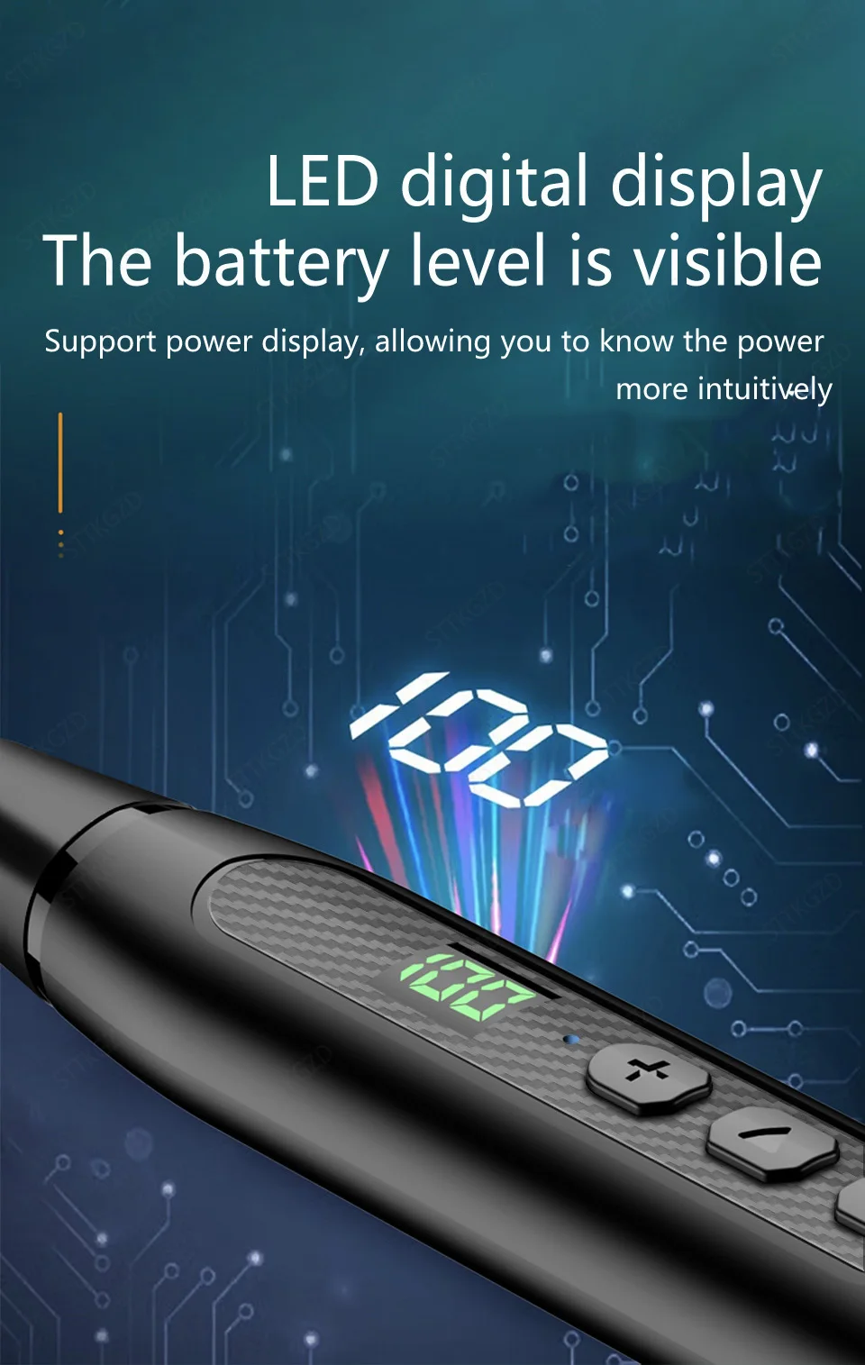 ♪La pantalla de potencia LED de alta definición le permite verificar la potencia de los auriculares Bluetooth sin usar su teléfono móvil. El nivel de potencia es claro de un vistazo.