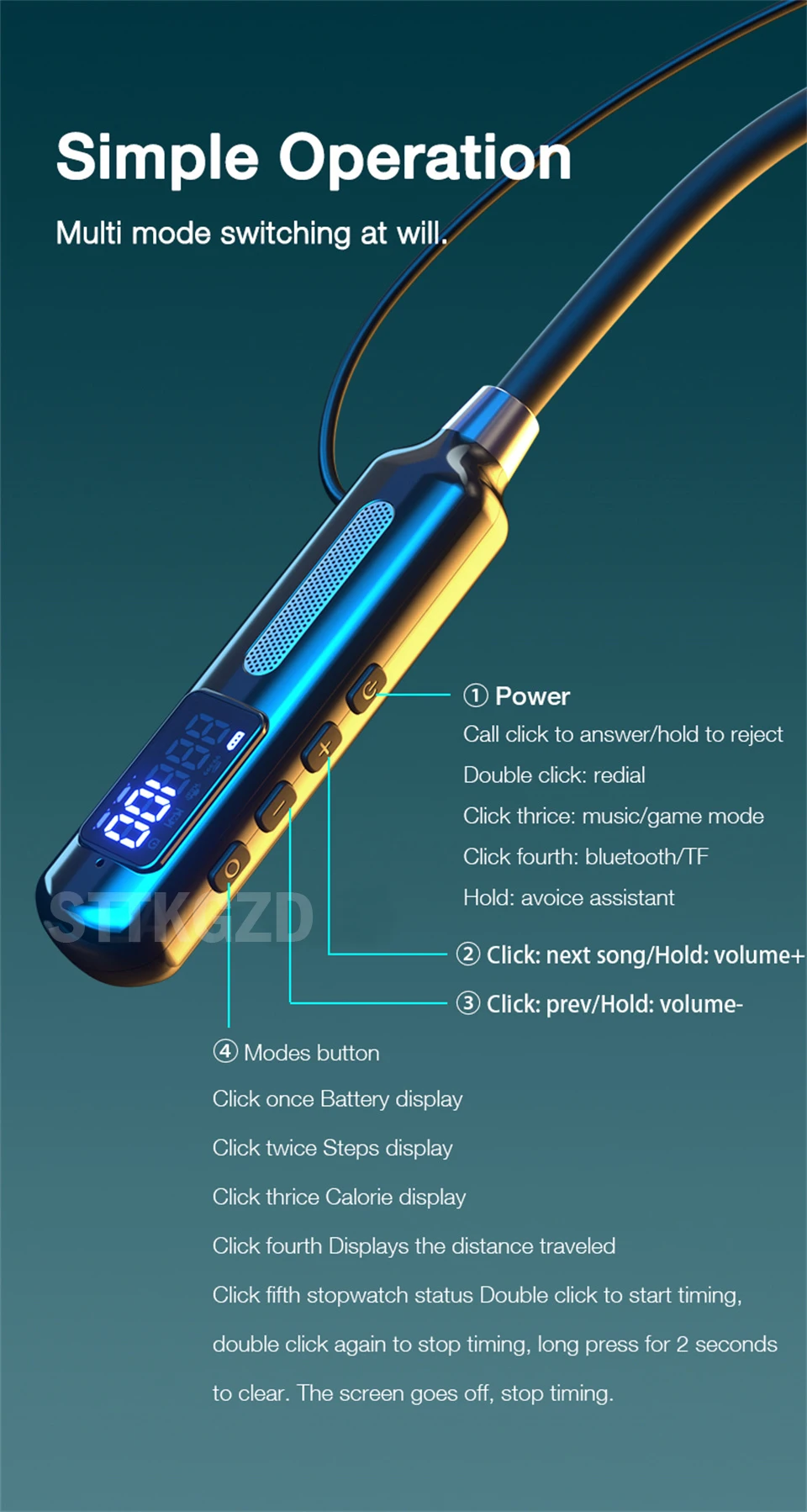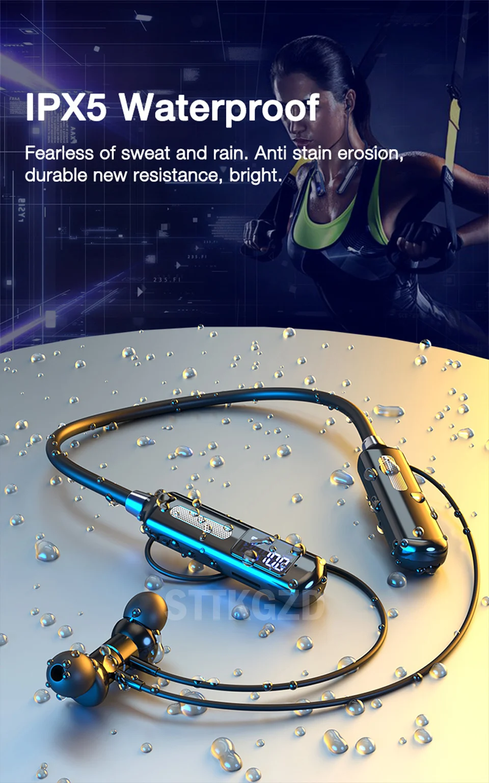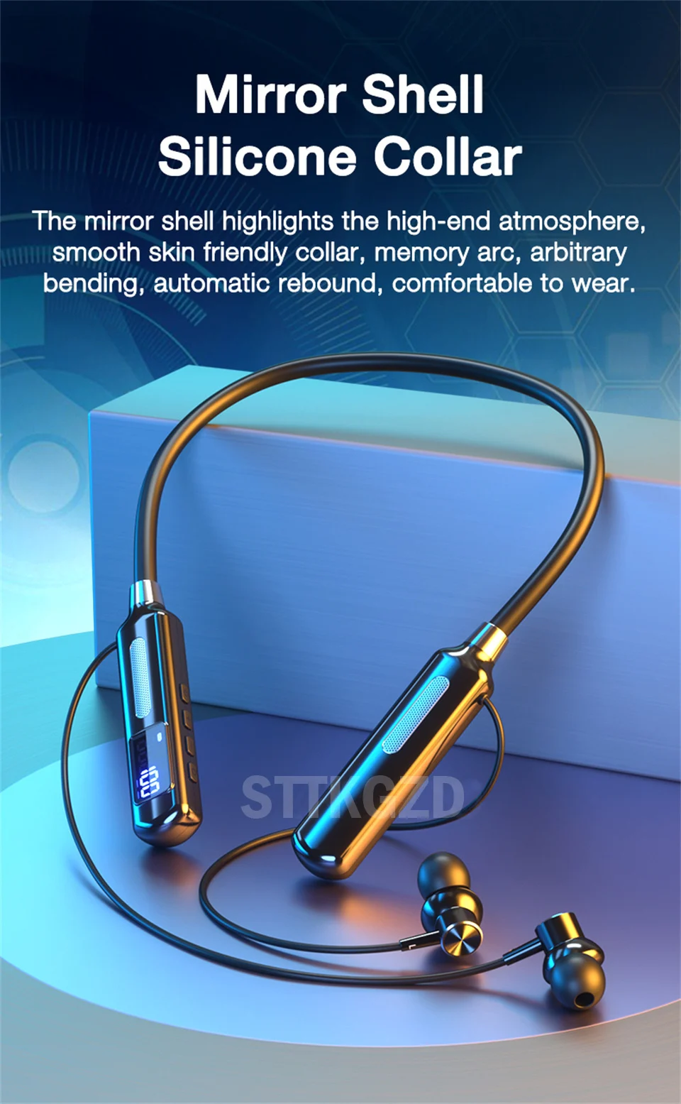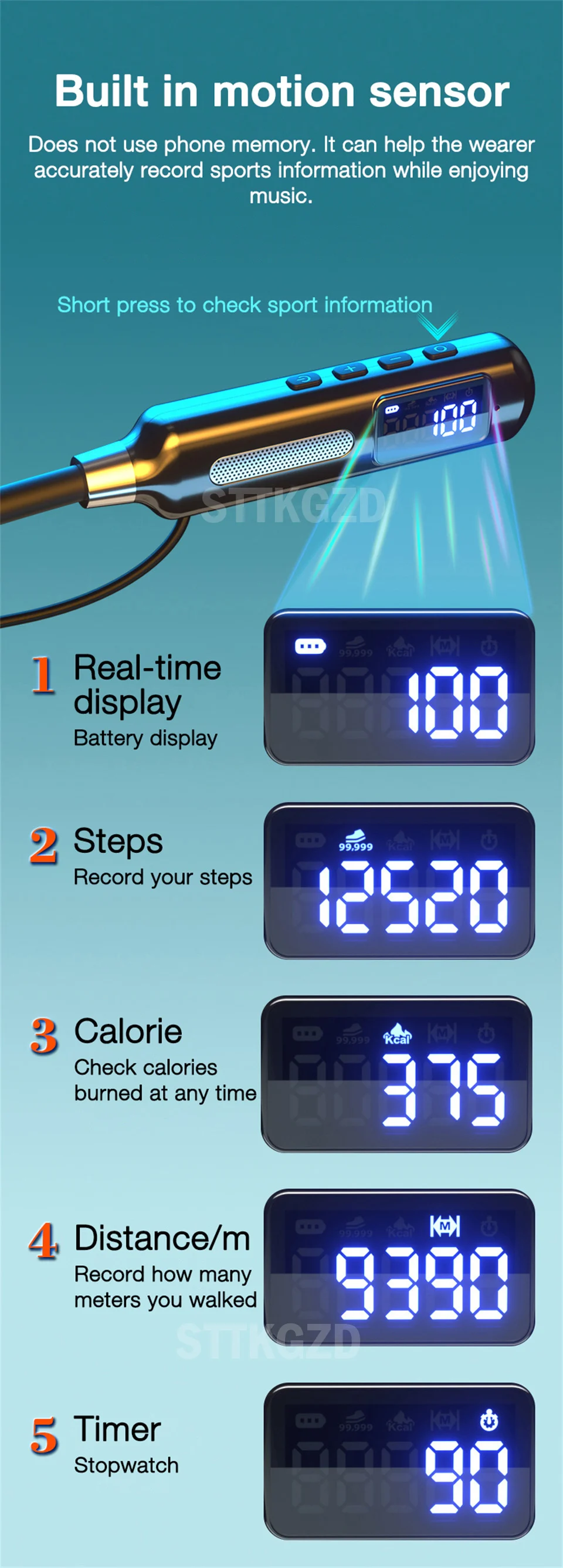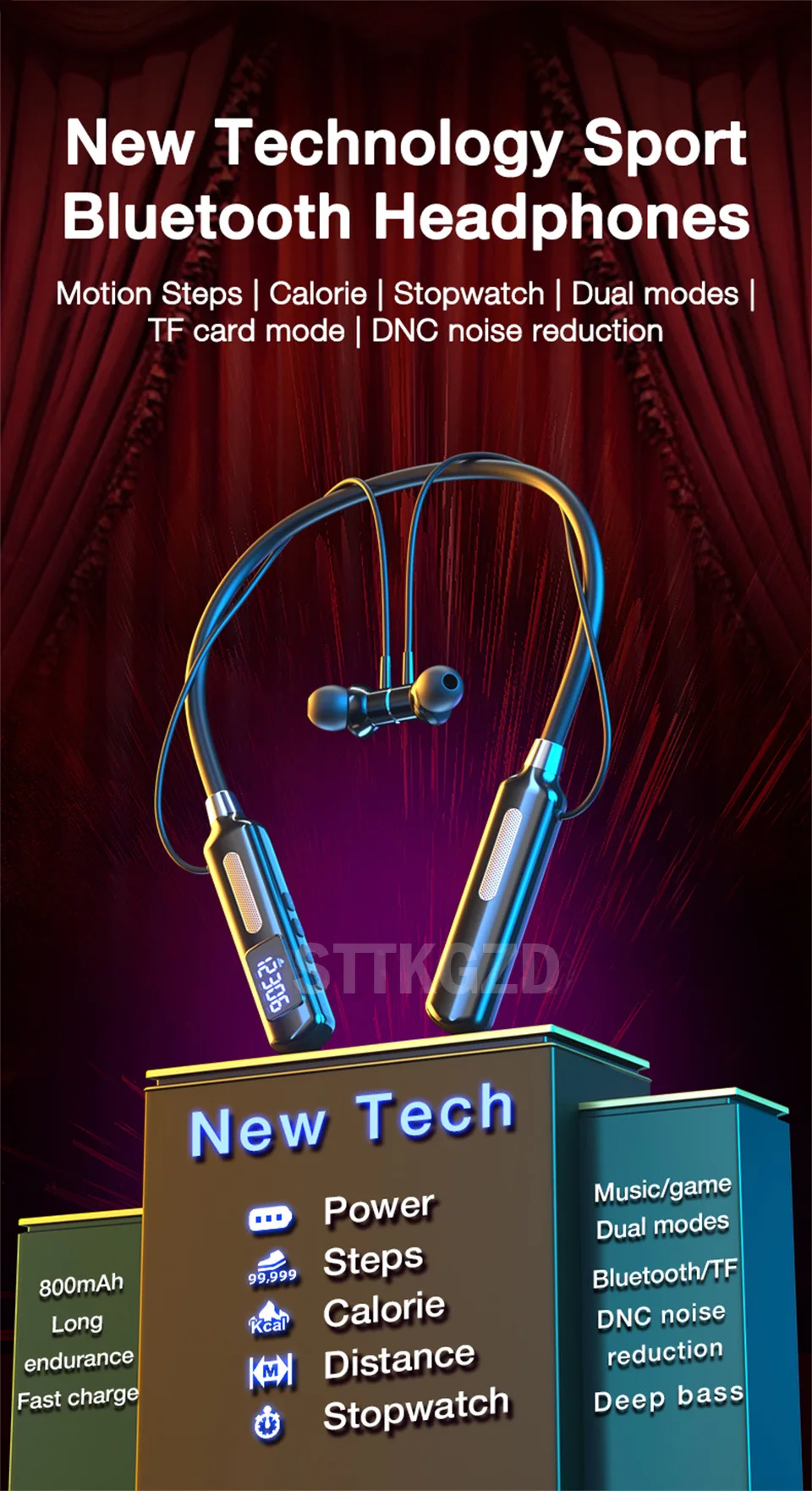 Comprar Auriculares inalámbricos con banda para el cuello, cascos Bluetooth con función de podómetro, batería larga, deportivos de alta calidad para tarjeta TF