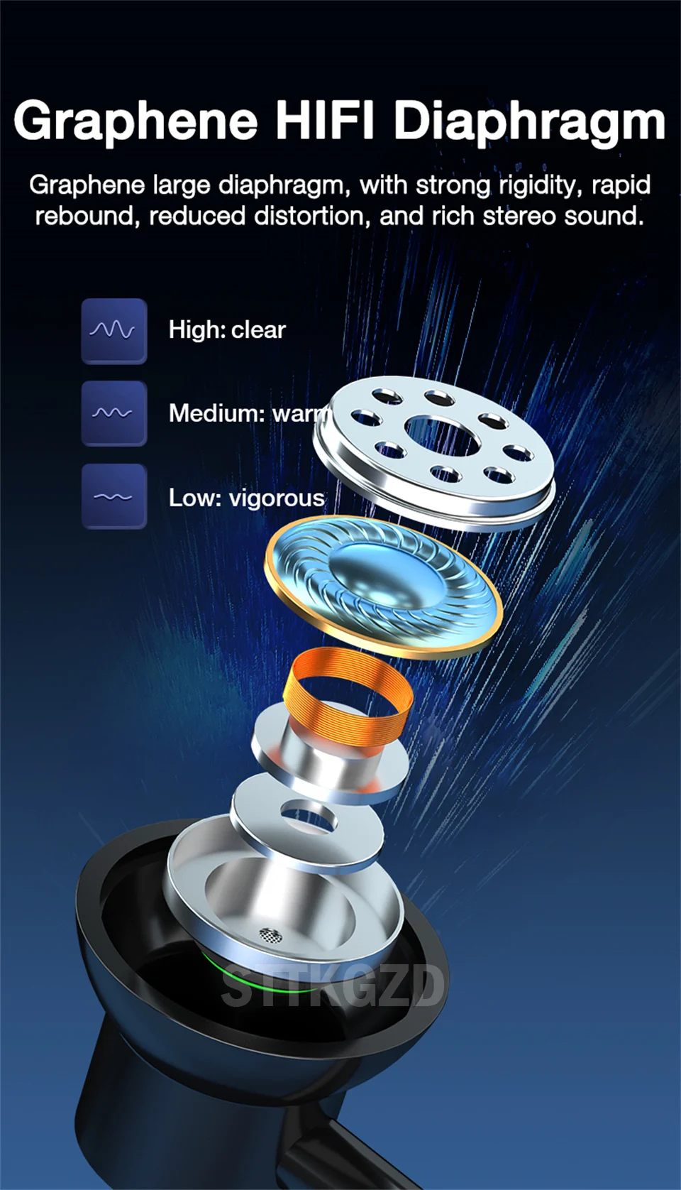 ♪ Diafragma de grafeno ultrafino:La calidad del sonido es transparente y potente, lo que le brinda un efecto de sonido envolvente 36D inmersivo.