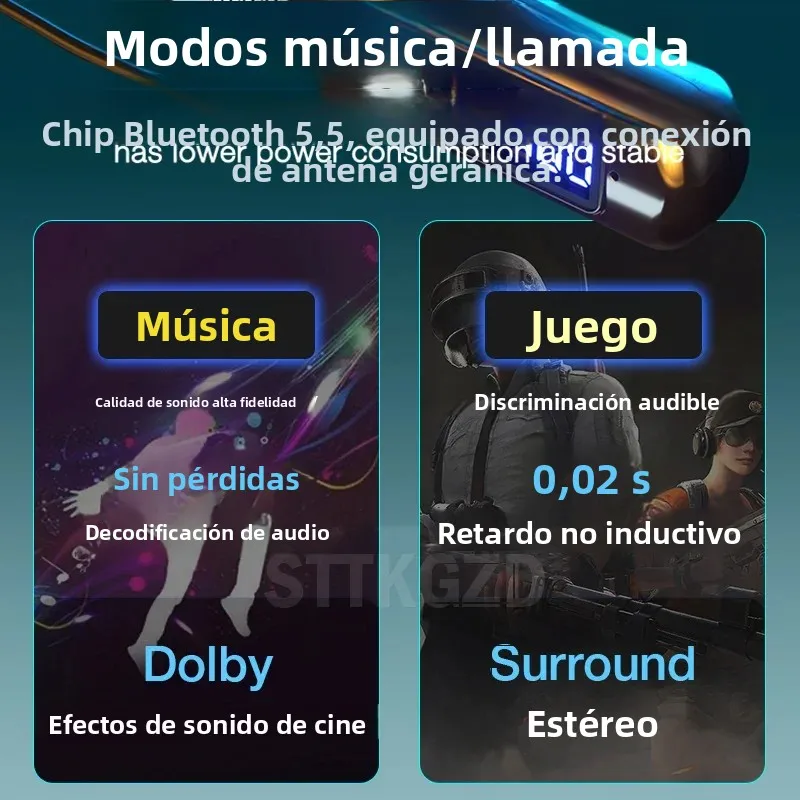 ♪ Bluetooth 5,5:Nueva generación de chips 5.5 de bajo consumo, conexión simple y rápida, señal estable, sin demoras ni desconexión.