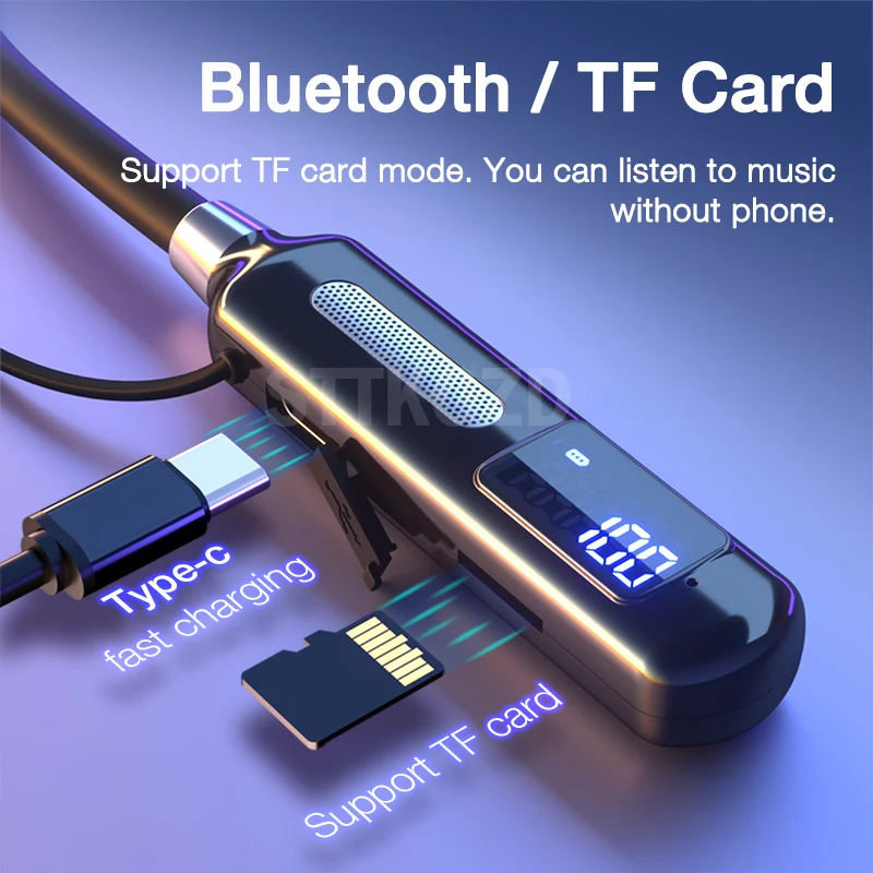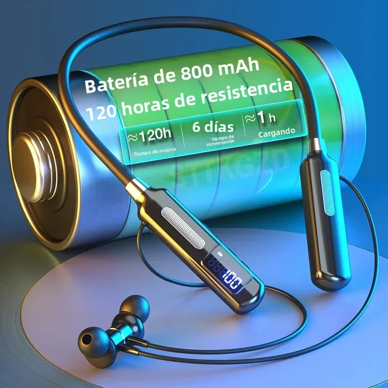Comprar Auriculares inalámbricos con banda para el cuello, cascos Bluetooth con función de podómetro, batería larga, deportivos de alta calidad para tarjeta TF