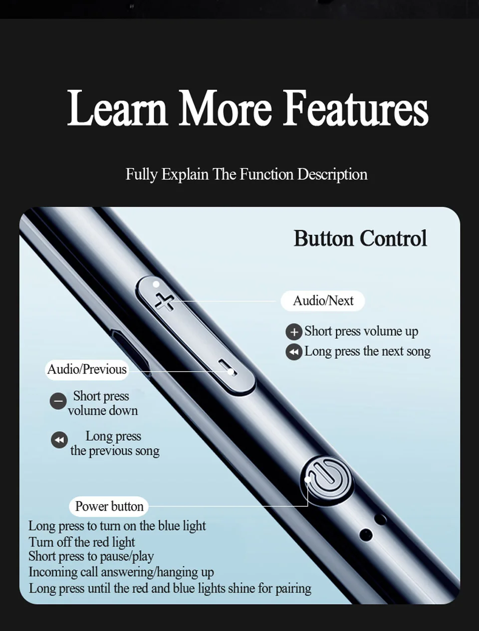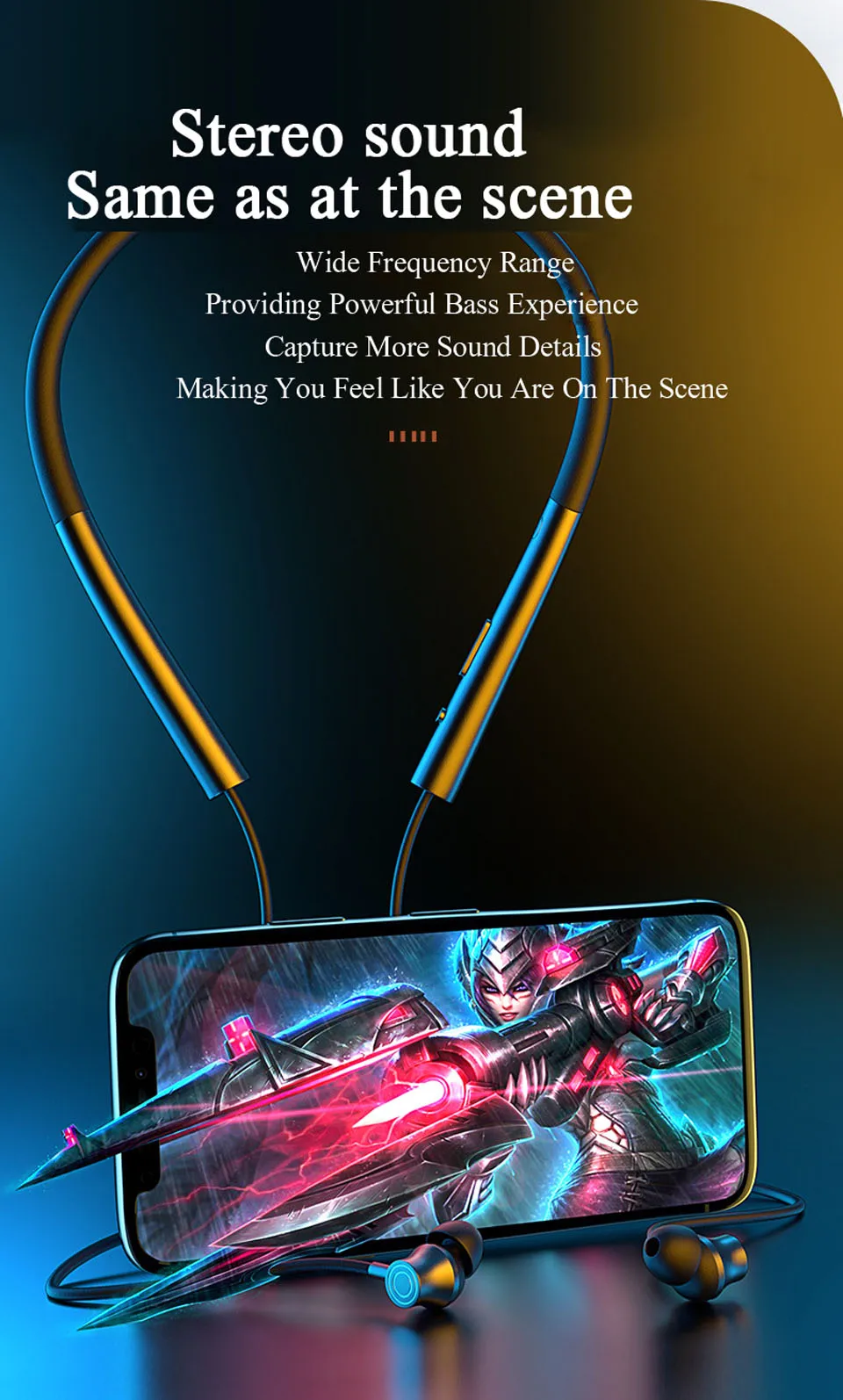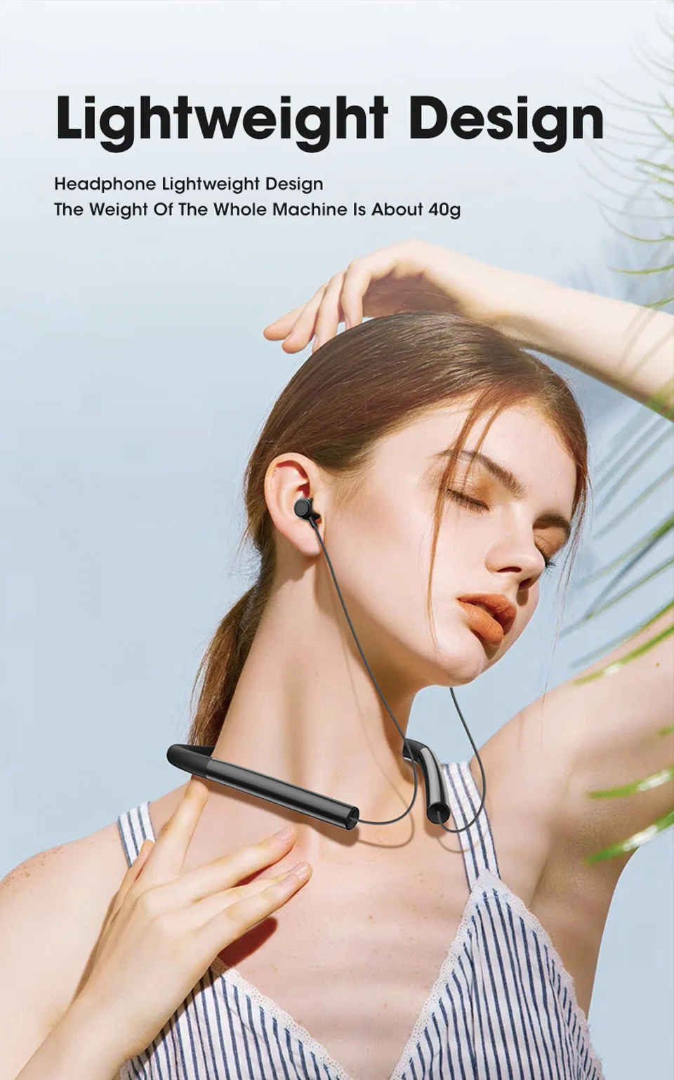 Auriculares inalámbricos con banda para el cuello, cascos Bluetooth con micrófono, tiempo de uso prolongado para deportes, cancelación de ruido magnética