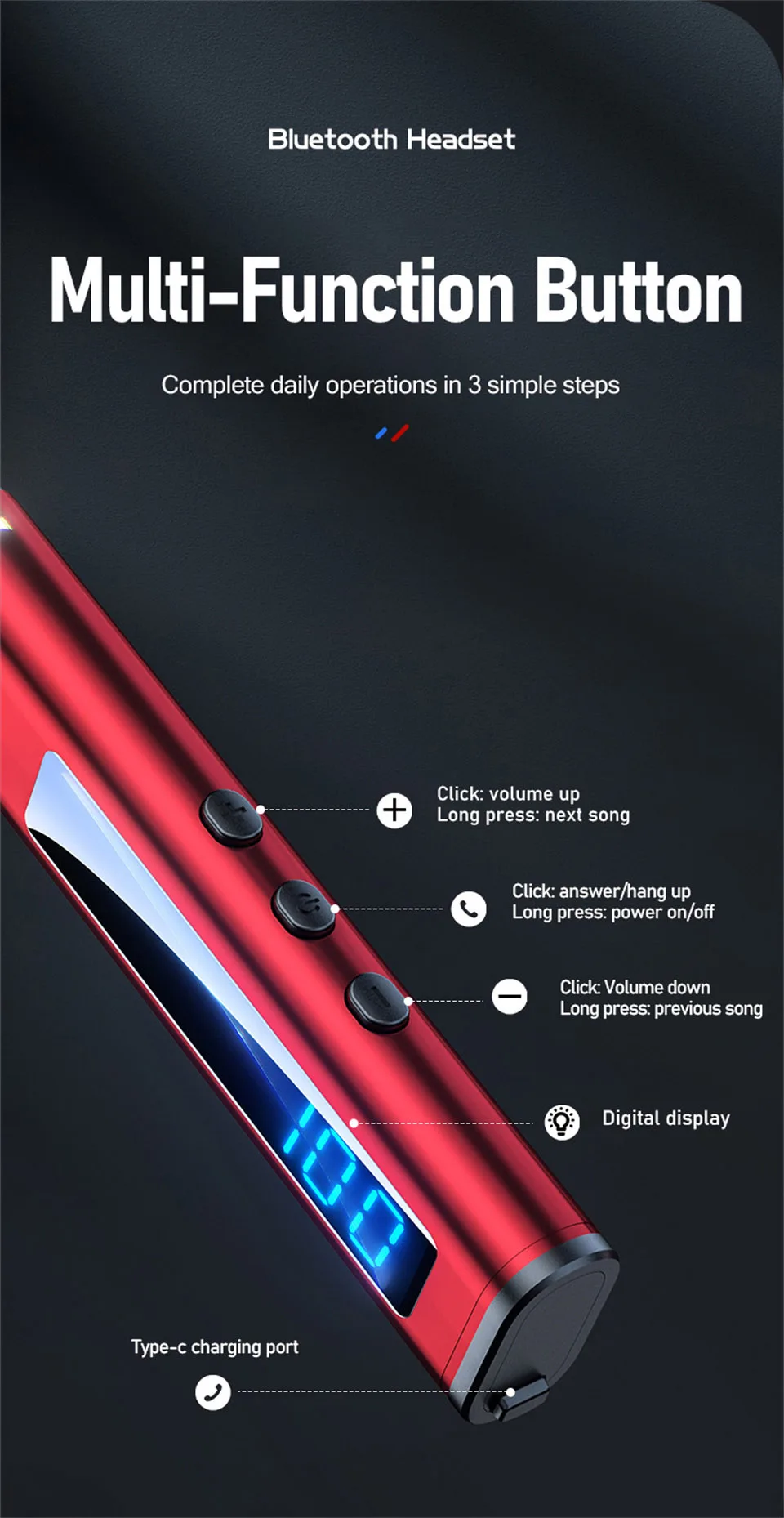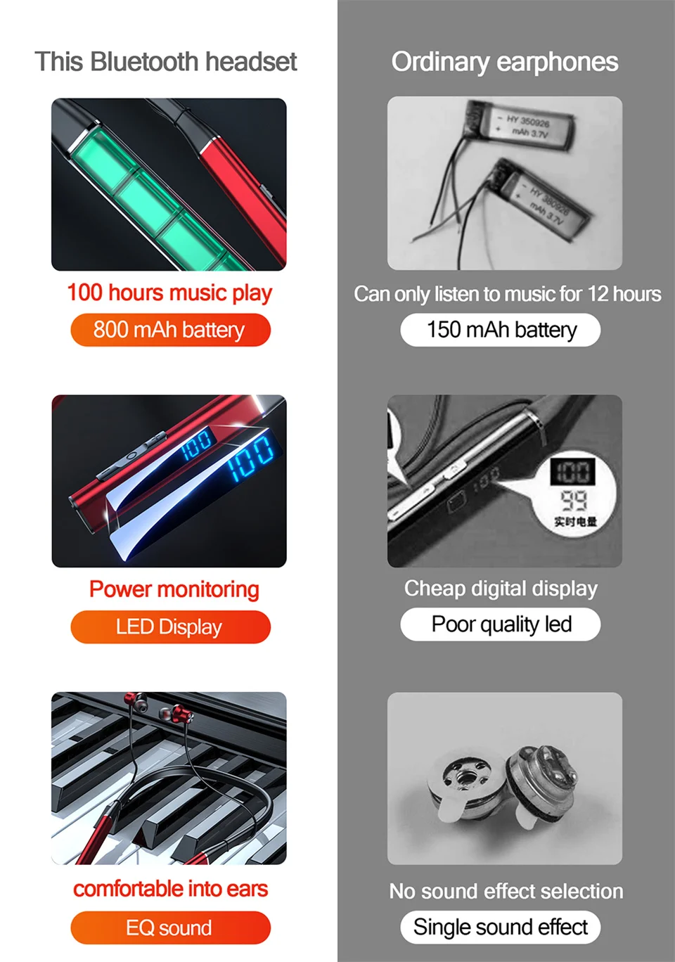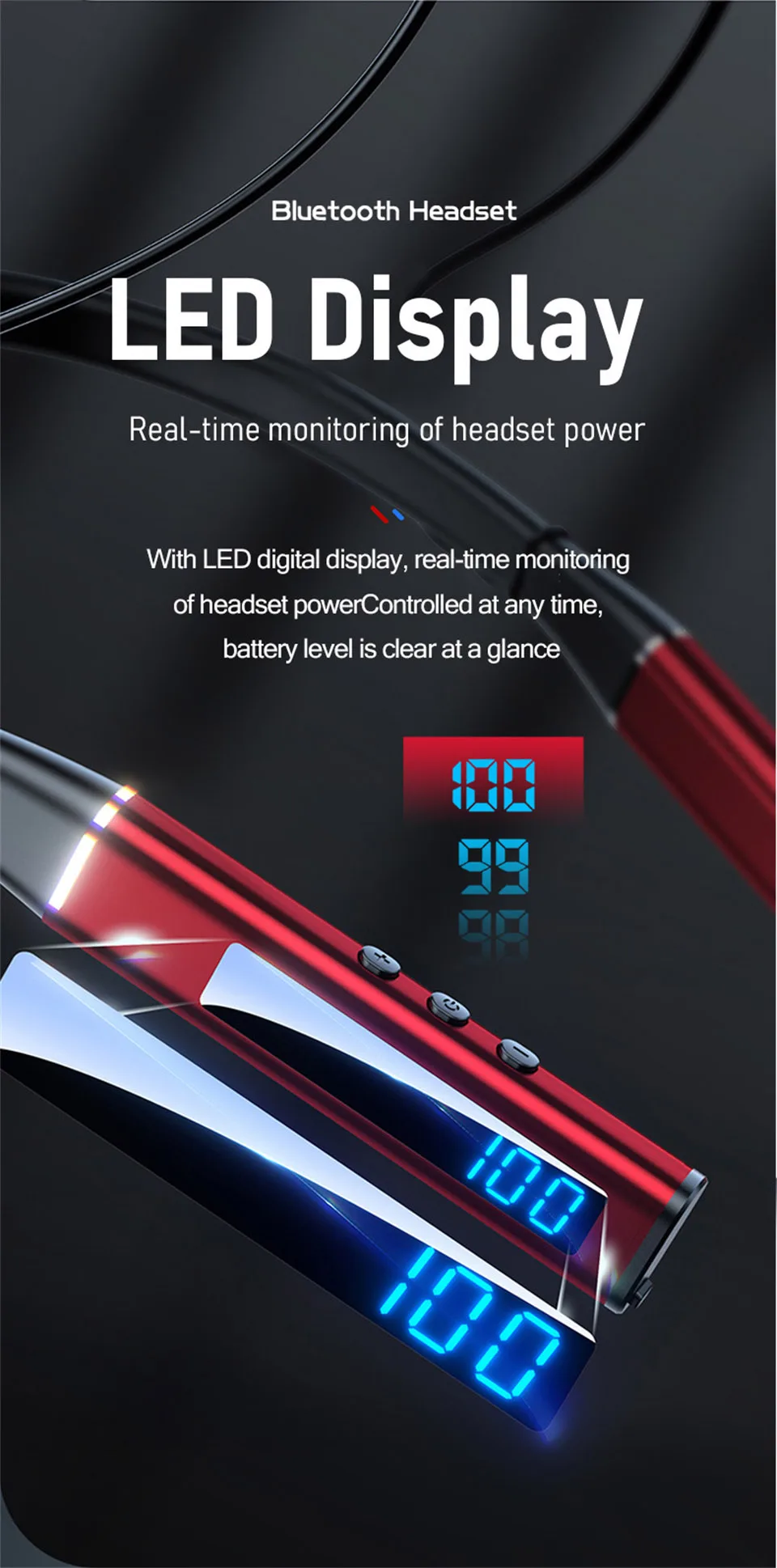 ♪ Pantalla de alimentación LED de alta definición, puede verificar la potencia de los auriculares Bluetooth sin usar un teléfono móvil y la energía es clara de un vistazo.