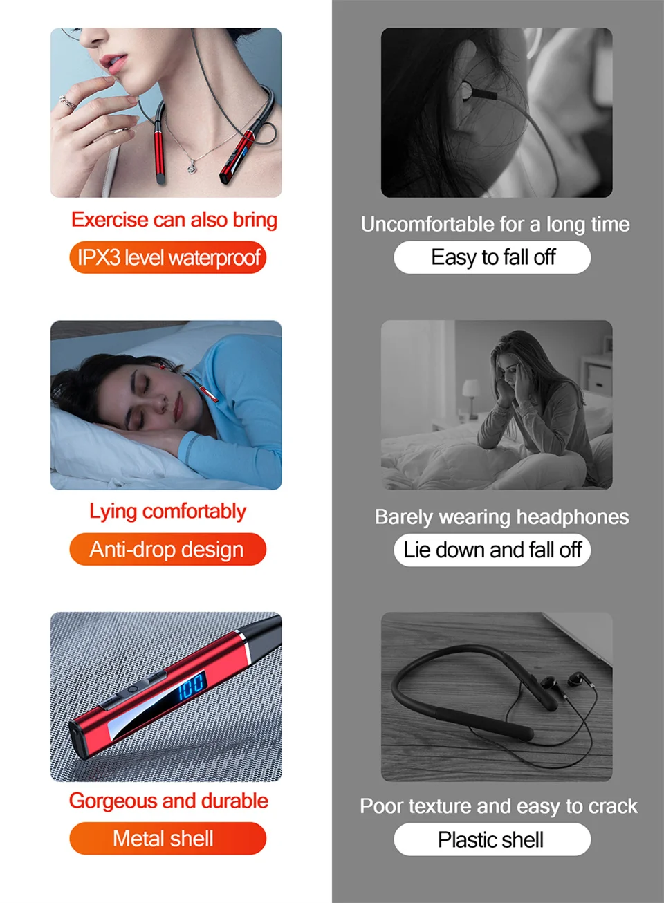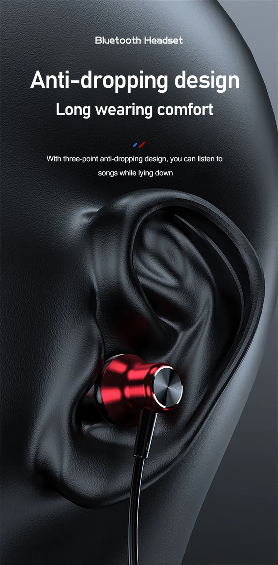 ♪ Adoptando un diseño ergonómico, oreja cómoda en un ángulo de 45 grados, material con memoria agradable para la piel, flexión flexible sin deformación, ligero y cómodo de llevar.
