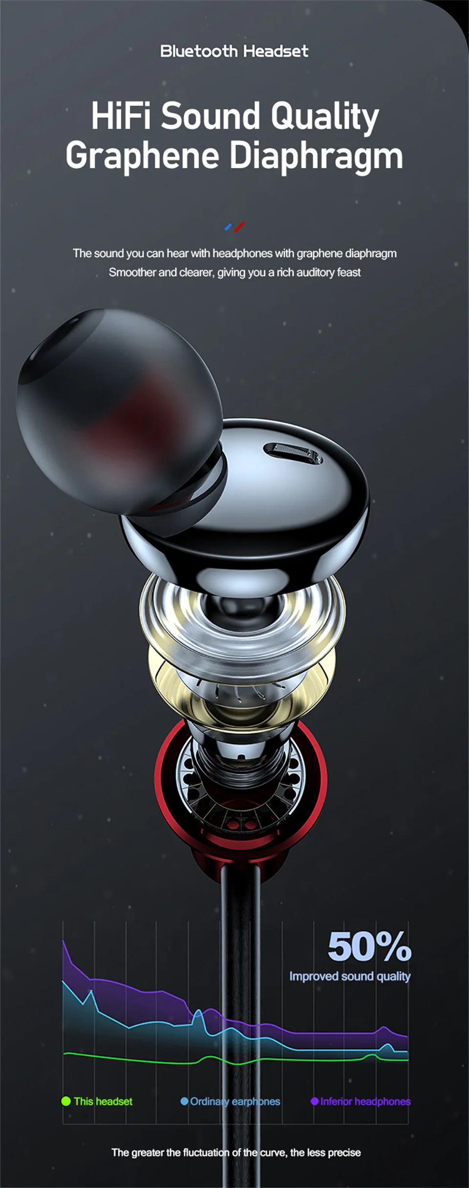 ♪ Diafragma de grafeno ultrafino, calidad de sonido transparente y potente, que le brinda un efecto de sonido envolvente 36D inmersivo.