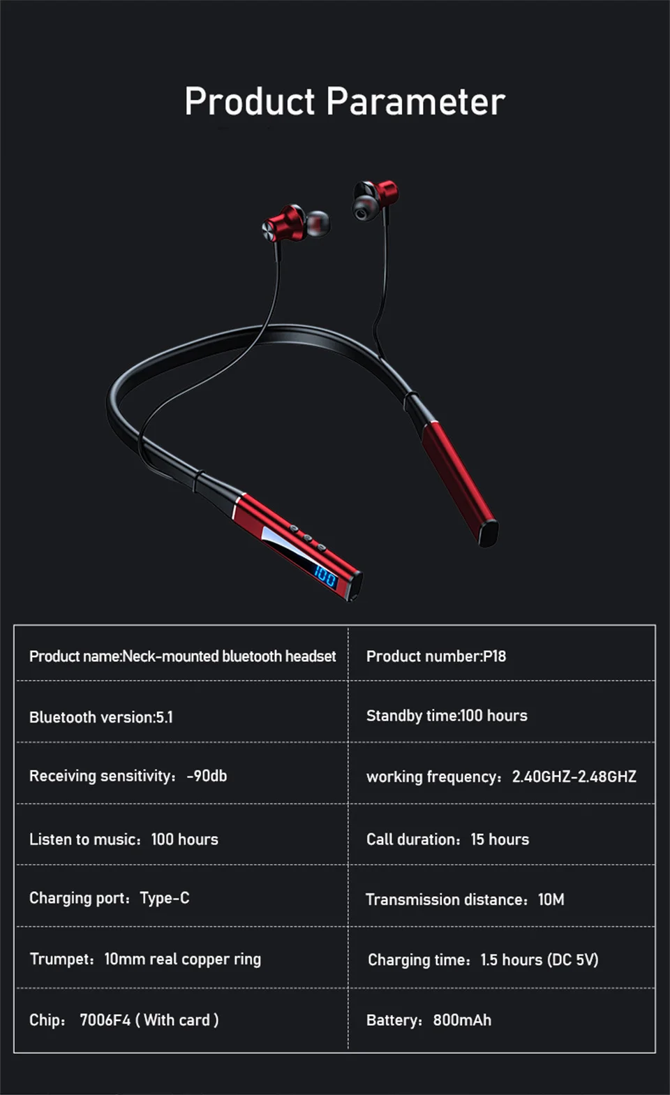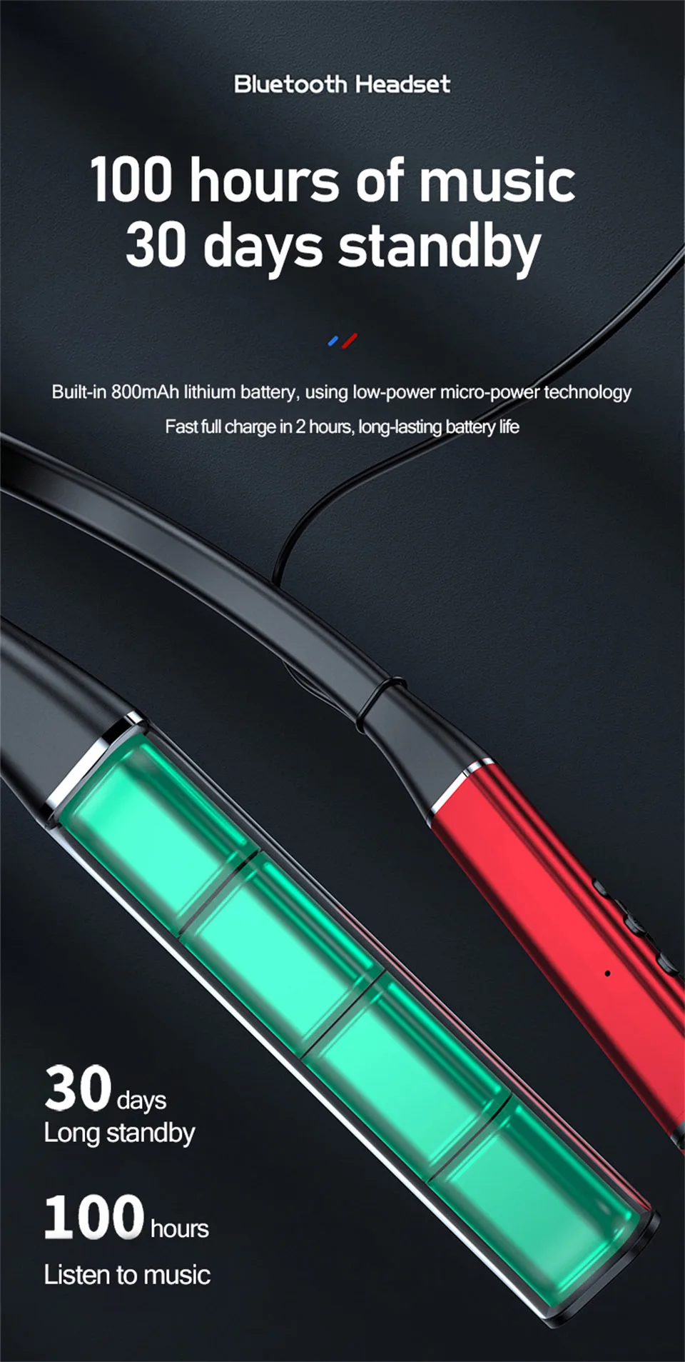 ♪ 100 horas de uso continuo de los auriculares Bluetooth, lo que le brinda una experiencia auditiva más larga.