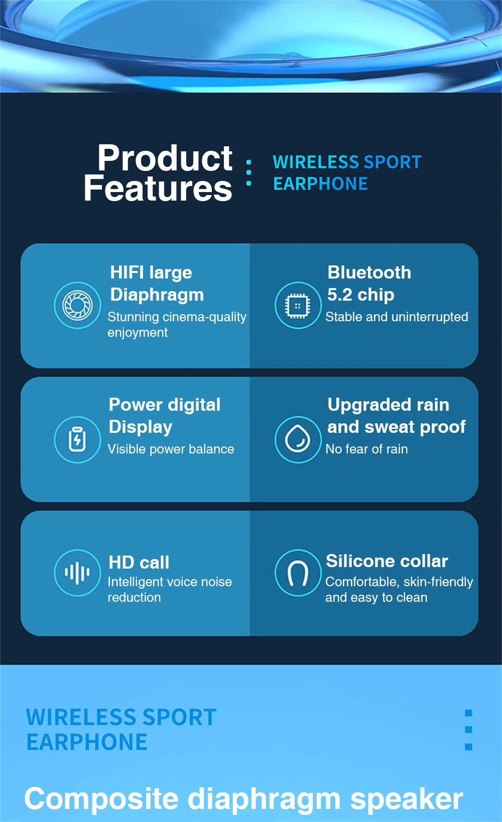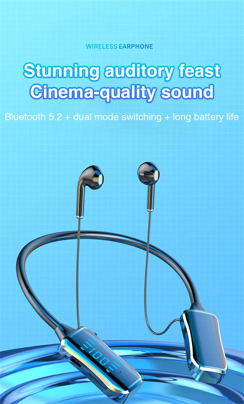 Comprar Auriculares inalámbricos con batería de larga duración, banda para el cuello 5,2, con micrófono, auriculares deportivos con reducción de ruido para 1-10 piezas