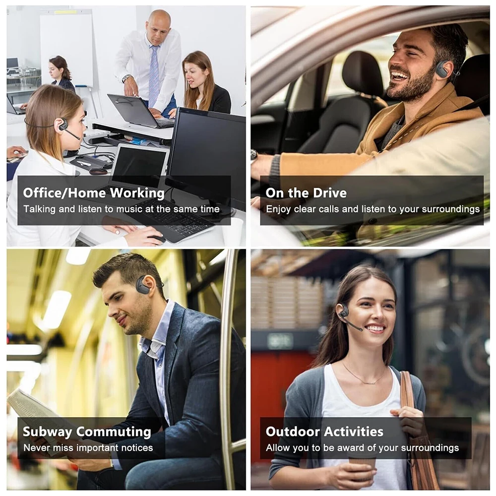 Características:1.[Auriculares conductores de aire] Los auriculares conductores de aire colgantes liberan sus oídos.En comparación con los auriculares internos tradicionales, este modelo adopta un diseño de oído abierto, lo que elimina la necesidad de meter los auriculares en los oídos.Los auriculares abiertos con Bluetooth inalámbrico no solo mantienen limpio el canal auditivo, no dañan los tímpanos, sino que tampoco cubren los oídos, para que pueda comprender el entorno circundante, evitar posibles peligros y mantenerse seguro.2.[Micrófono con cancelación de ruido desmontable] Los auriculares abiertos están equipados con tecnología de cancelación de ruido DSP para garantizar llamadas claras y una buena experiencia musical.¡El brazo desmontable adopta un diseño magnético y puede girar 360 grados, maximizando su capacidad de captación de voz y mejorando la calidad de la llamada!Además, los auriculares Bluetooth con micrófonos incluyen Φ El altavoz del controlador de 15,4 mm es más grande que otros auriculares, lo que da como resultado un sonido más claro y fuerte.3.[Ligeros y cómodos todo el día] Los auriculares inalámbricos están diseñados con ergonomía.El gancho para la oreja está hecho de silicona, que es agradable para la piel y cómoda, se ajusta perfectamente a las orejas, se fija firmemente y no se mueve ni rebota.Se puede usar durante mucho tiempo sin causar dolor de oído.Los auriculares Bluetooth con micrófonos tienen un cable de memoria curvo de 360 grados no deformable, que se puede girar libremente sin romperse.Es más fácil de llevar, puedes colgarlo alrededor de tu cuello y llevarlo a donde quieras ir.4.[Conexión estable Bluetooth 5.3 avanzada] Los auriculares inalámbricos utilizan chips Bluetooth 5.3 avanzados, con transmisión de señal rápida, conexión estable y un alcance de hasta 33 pies (10 metros).Después de una conexión exitosa, se conectará automáticamente al último dispositivo conectado.Los auriculares Bluetooth se pueden conectar a dos dispositivos simultáneamente para garantizar que no se pierda llamadas.La función de reducción de ruido de los auriculares Bluetooth es ampliamente compatible con teléfonos móviles/PC/computadoras/portátiles/tabletas/iPad y otros dispositivos.5.[Impermeable deportivo IPX5 profesional] Los auriculares abiertos con micrófono y Bluetooth inalámbrico tienen una clasificación de impermeabilidad IPX5, que es muy adecuada para las personas que aman los deportes, correr, andar en bicicleta, hacer senderismo, esquiar, hacer snowboard y hacer ejercicio.Los auriculares Bluetooth con micrófonos con cancelación de ruido son los mejores socios para oficinas, reuniones, conductores de camiones, enseñanza en línea, centros de llamadas y trabajo en casa.(Nota: solo puede prevenir una pequeña cantidad de sudor y lluvia, ¡no se recomienda nadar!)6.[Durable y de larga duración] Los auriculares Bluetooth con micrófonos son duraderos y tienen una batería de iones de litio recargable de gran capacidad incorporada de 150 mAh, con un tiempo de espera de hasta 200 horas.La carga rápida USB tipo C tarda aproximadamente 1,5 horas, lo que le permite disfrutar de 12 horas de música/llamadas ininterrumpidas.Los botones multifuncionales se pueden operar fácilmente, encender/apagar, reproducir/pausar música, activar el asistente de voz, cambiar entre modos de música/juego, responder/colgar/rechazar/reproducir llamadas.Especificaciones:Nombre del producto: Auriculares BluetoothTipo de producto: Montado en la orejaModelo de producto: G9Versión de Bluetooth: 5.3Distancia de transmisión: 10 metrosProtocolo Bluetooth: A2DP AVRCP HFP HSPCapacidad de la batería: 150 mAhHoras de trabajo: 12HTiempo de carga: 1,5HTiempo en espera: 200HPuerto de carga: tipo cPotencia de salida: 66mWRespuesta de frecuencia: 20Hz-20KHzTamaño de la bocina: 15,4 mmImpedancia de la bocina: 30 ΩMaterial del producto: ABSColor del producto: negroLista de embalaje:1 * auriculares Bluetooth1 * Manual de usuario1 * cable tipo c1 * micrófono desmontable4 * funda de goma suave desmontableNota:1.¡Dependiendo del color de la luz, puede variar!2.Debido a la medición manual, permita una ligera diferencia de 1-2 cm.3. Gracias por su comprensión y atención. ¡Le deseamos una agradable experiencia de compra!