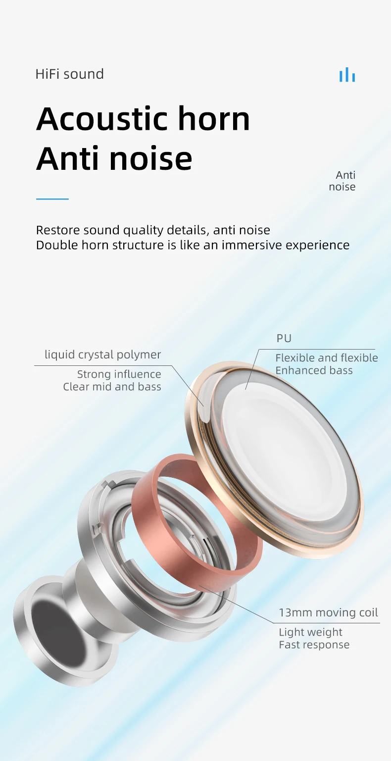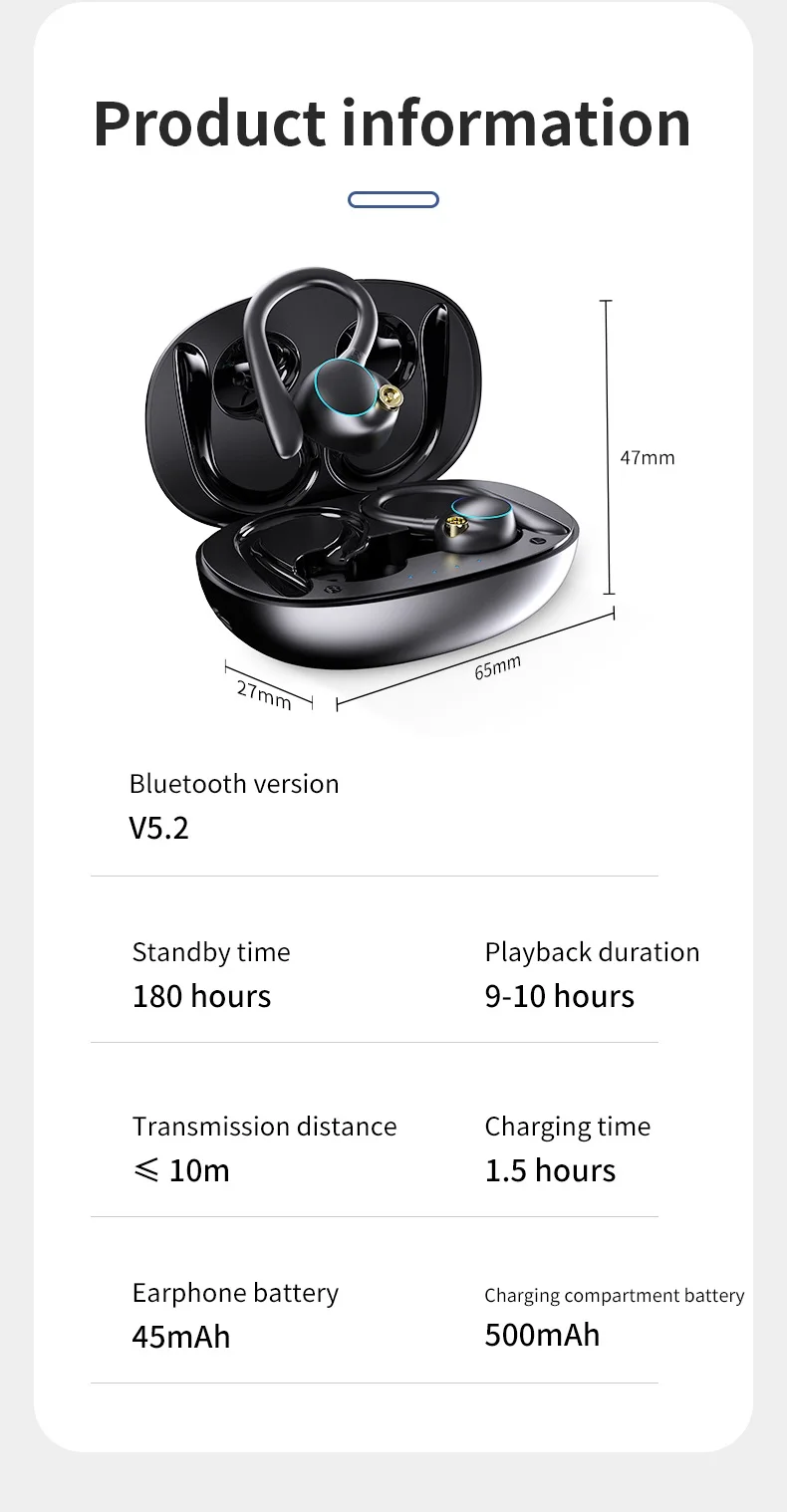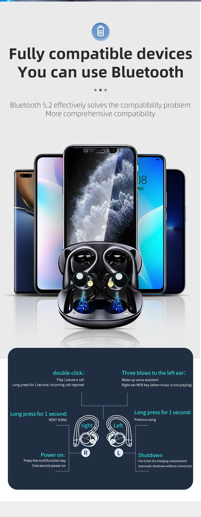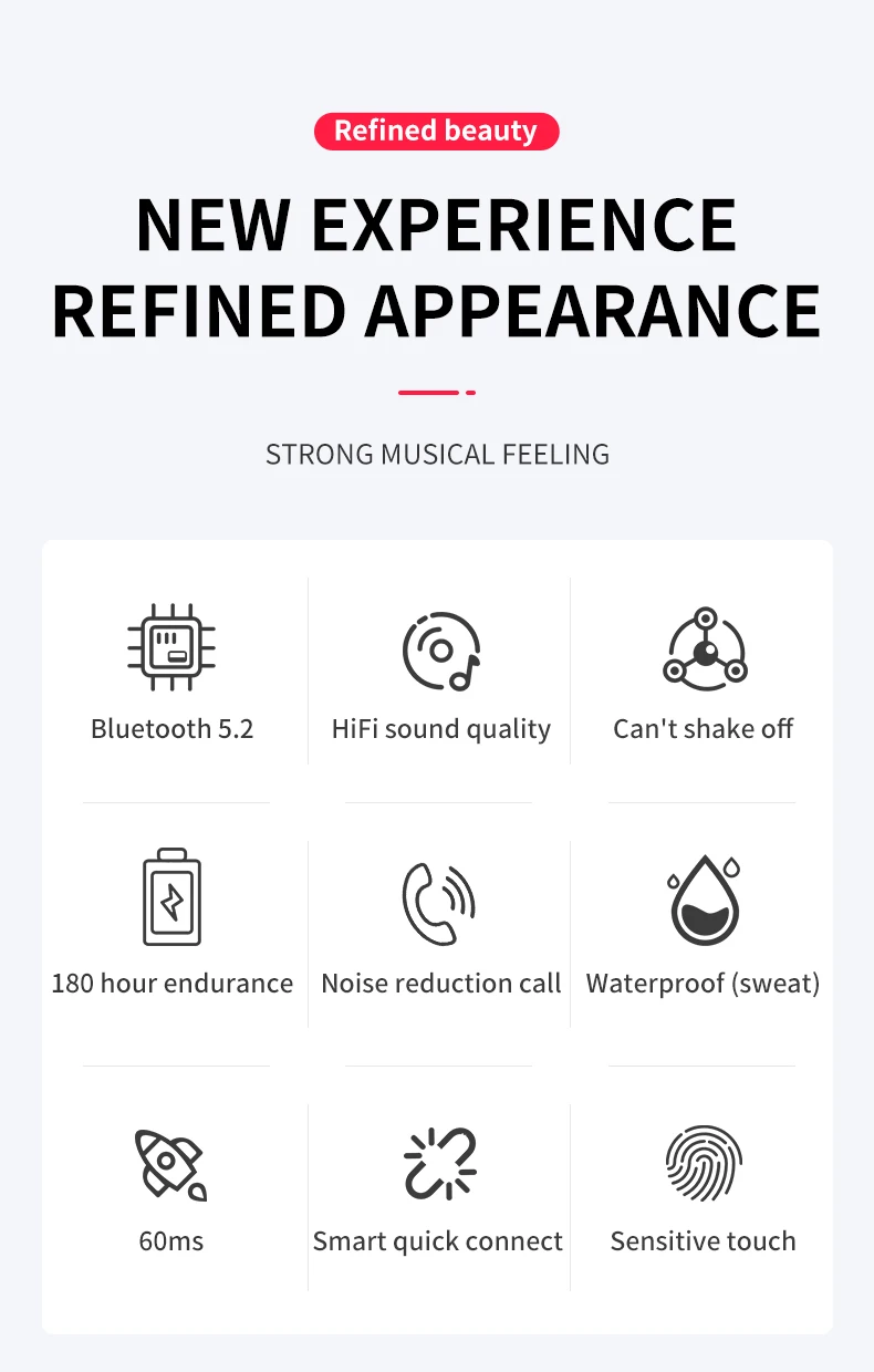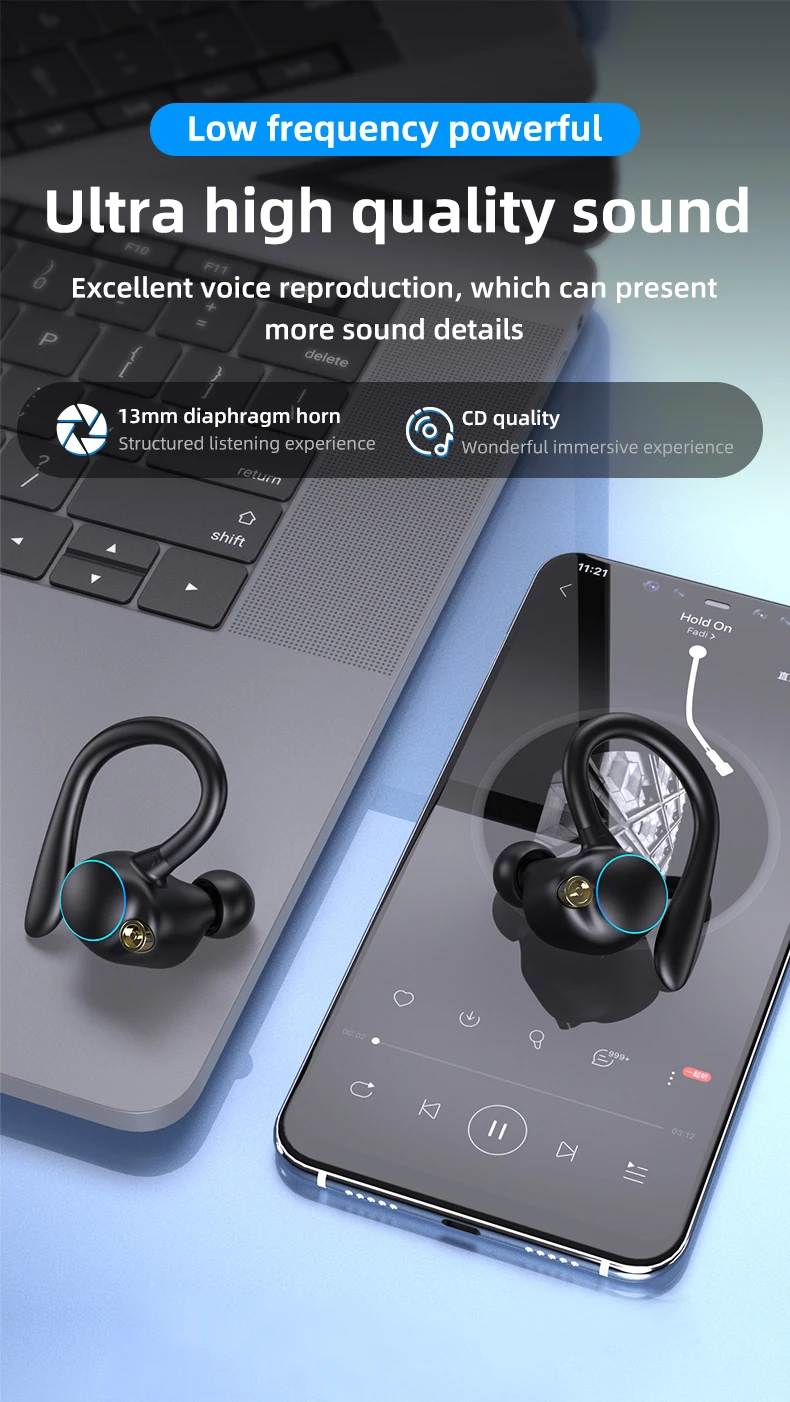 Nuevo auricular inalámbrico Bluetooth 5,2 auriculares HIFI Dual estéreo reducción de ruido bajo auriculares deportivos Control táctil con micrófono