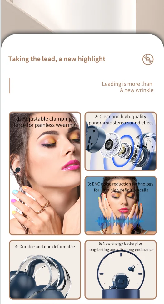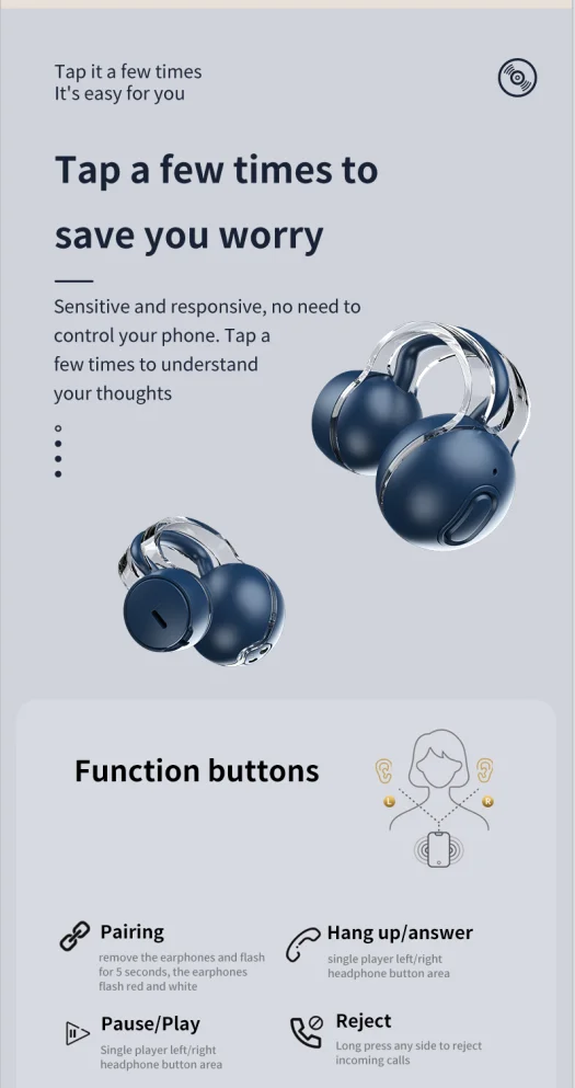 Comprar Auriculares inalámbricos con Bluetooth 5,3, audífonos con Clip para la oreja, transmisión ósea, llamada deportiva abierta, reducción de ruido, sonido de alta calidad, modo de reposo largo, nuevo
