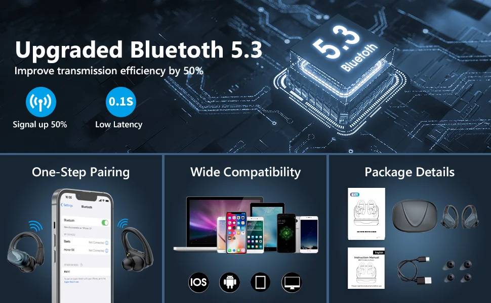 Comprar Auriculares inalámbricos con Bluetooth 5,3, audífonos deportivos con micrófono, gancho para la oreja, resistentes al agua, pantalla de alimentación, para correr