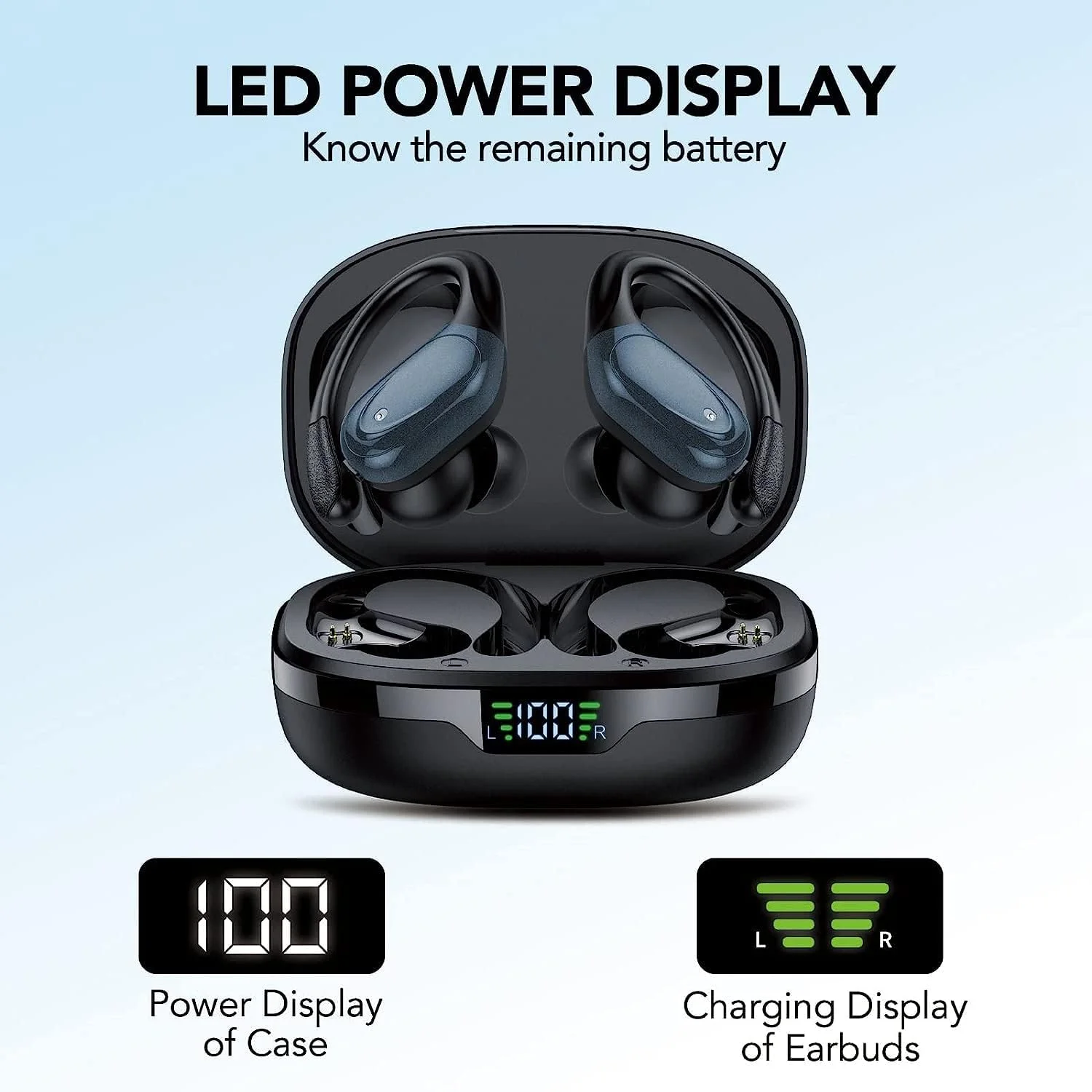 Comprar Auriculares inalámbricos con Bluetooth 5,3, audífonos deportivos con micrófono, gancho para la oreja, resistentes al agua, pantalla de alimentación, para correr