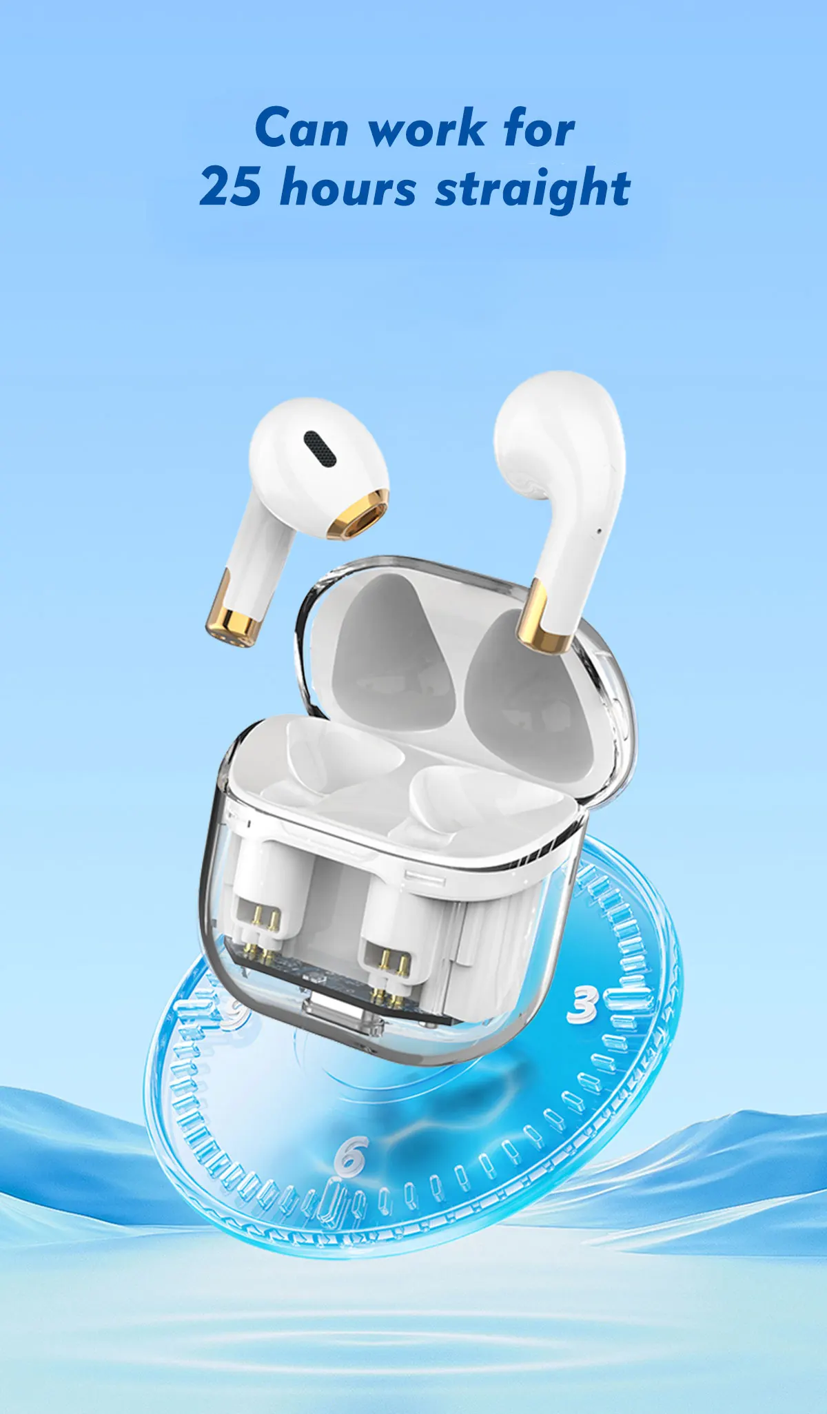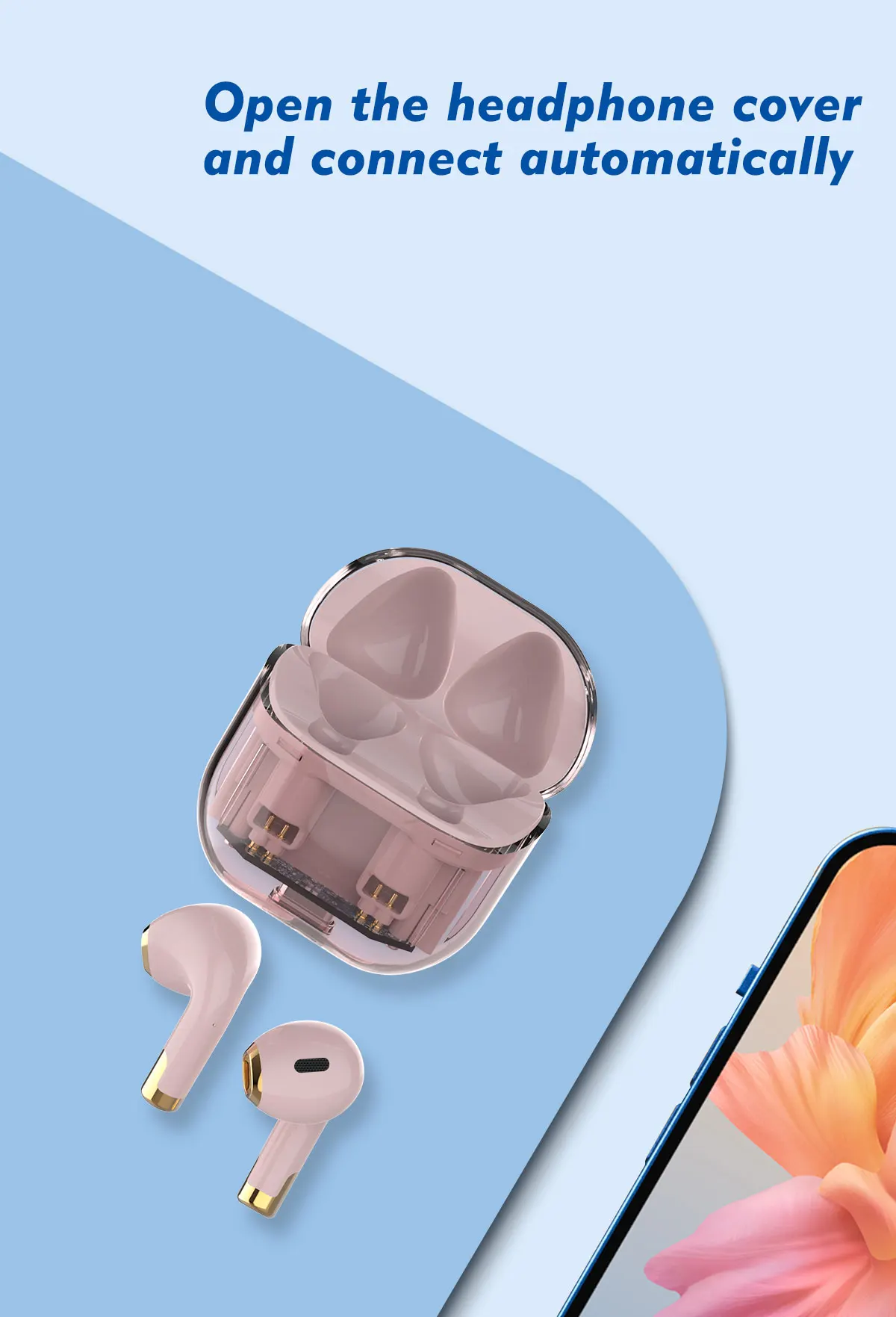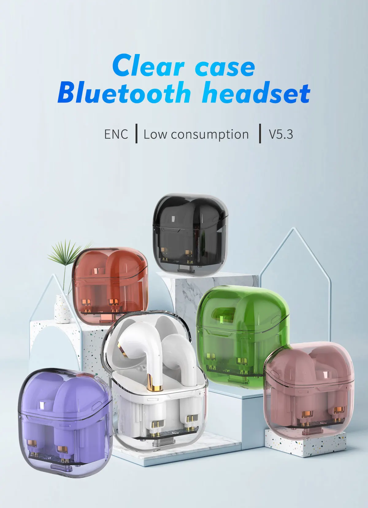 Comprar Auriculares inalámbricos con Bluetooth 5,3, audífonos transparentes con graves profundos, ENC, cancelación de ruido y llamadas, estéreo