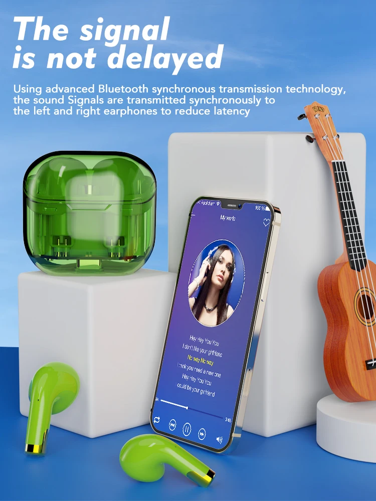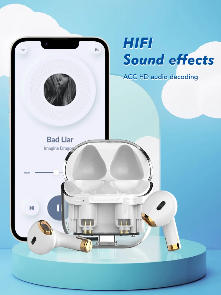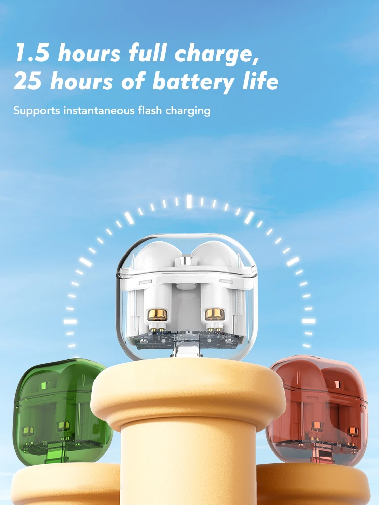 Comprar Auriculares inalámbricos con Bluetooth 5,3, audífonos transparentes con graves profundos, ENC, cancelación de ruido y llamadas, estéreo