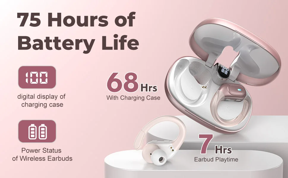 【Carga rápida tipo C】Solo los auriculares Bluetooth proporcionan hasta 7 horas de salida de sonido de alta calidad con una sola carga, y el estuche de carga incluido proporciona 4 cargas adicionales, proporciona aproximadamente 68 horas de tiempo total de juego. El cable de carga tipo C incluido proporciona una forma más estable de cargar. La pantalla LED de alimentación en la carcasa puede ayudar a verificar el estado de carga de los auriculares y el estuche de carga. Lleve los auriculares inalámbricos para viajar, puede disfrutar de música duradera todos los días.