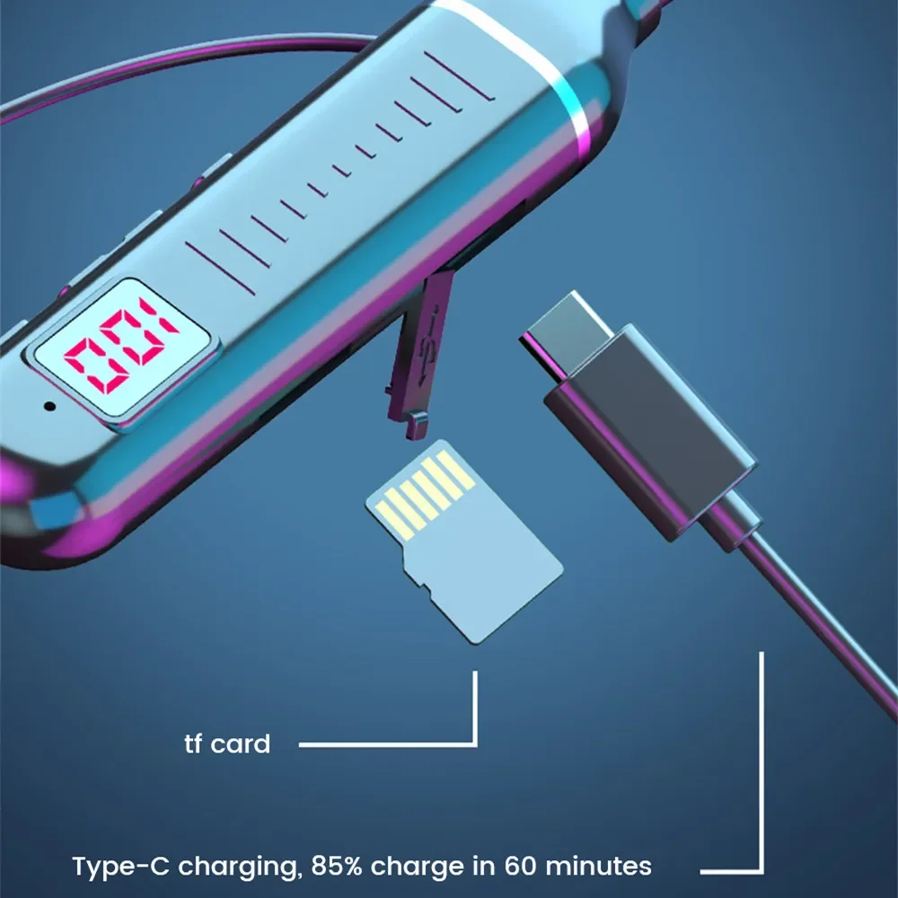Auriculares inalámbricos con Bluetooth 5,3, cascos con banda para el cuello, para videojuegos, pantalla LED, HIFI, deportivos, TWS, con micrófono, tarjeta TF