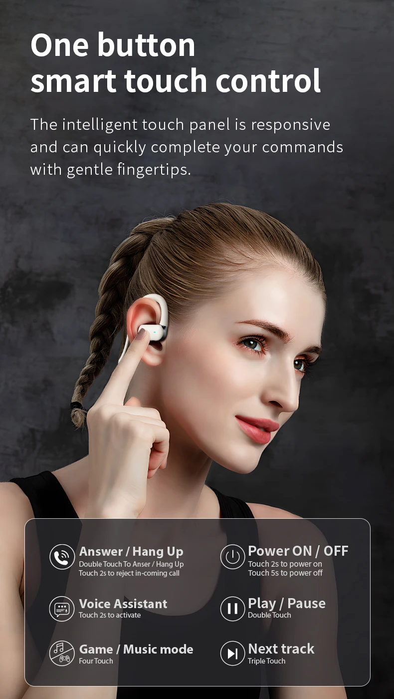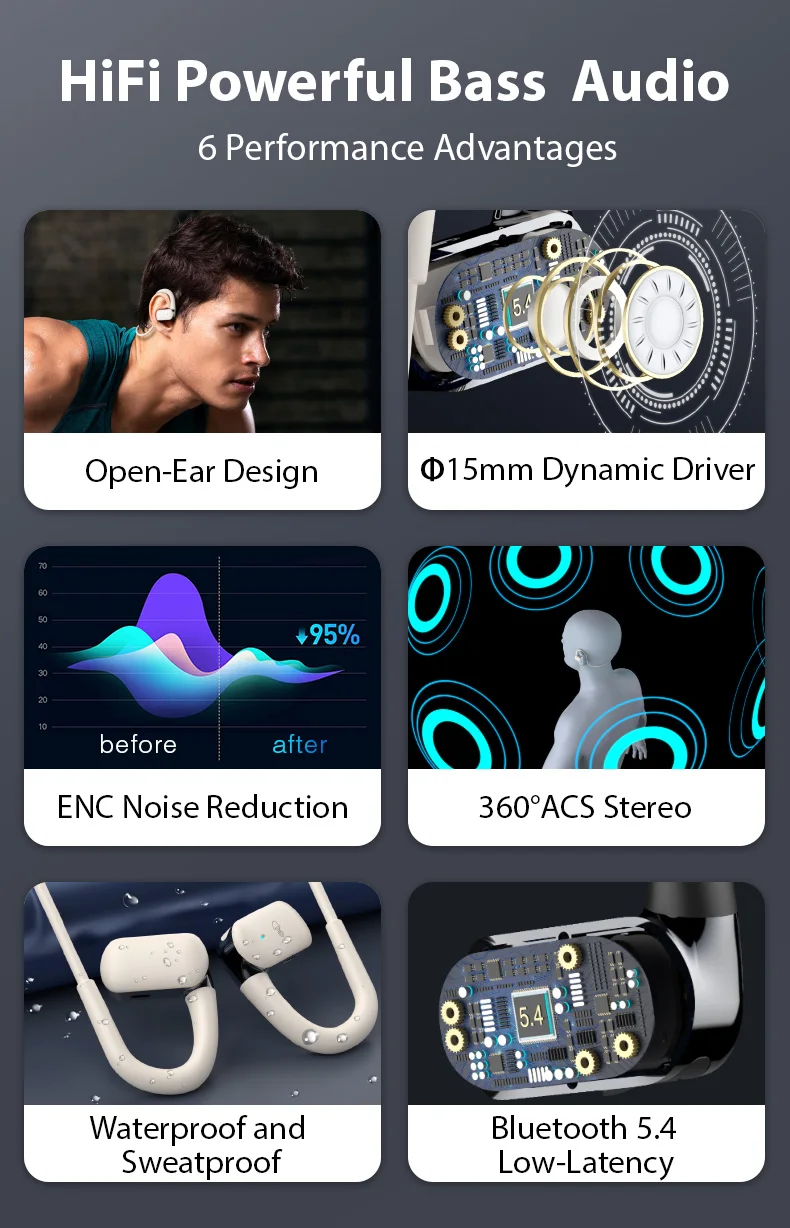 Comprar Auriculares inalámbricos con Bluetooth 5,4 para deportes al aire libre, cascos con conducción de aire, estéreo, Control táctil, para correr