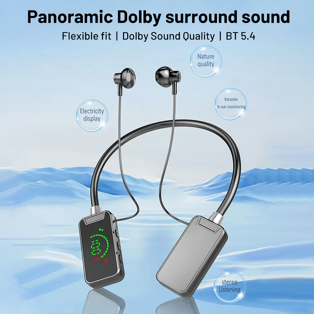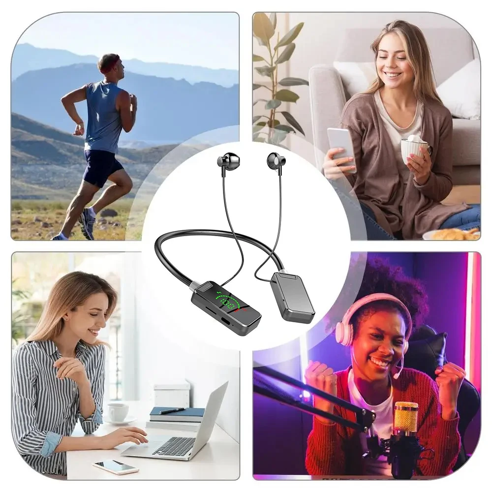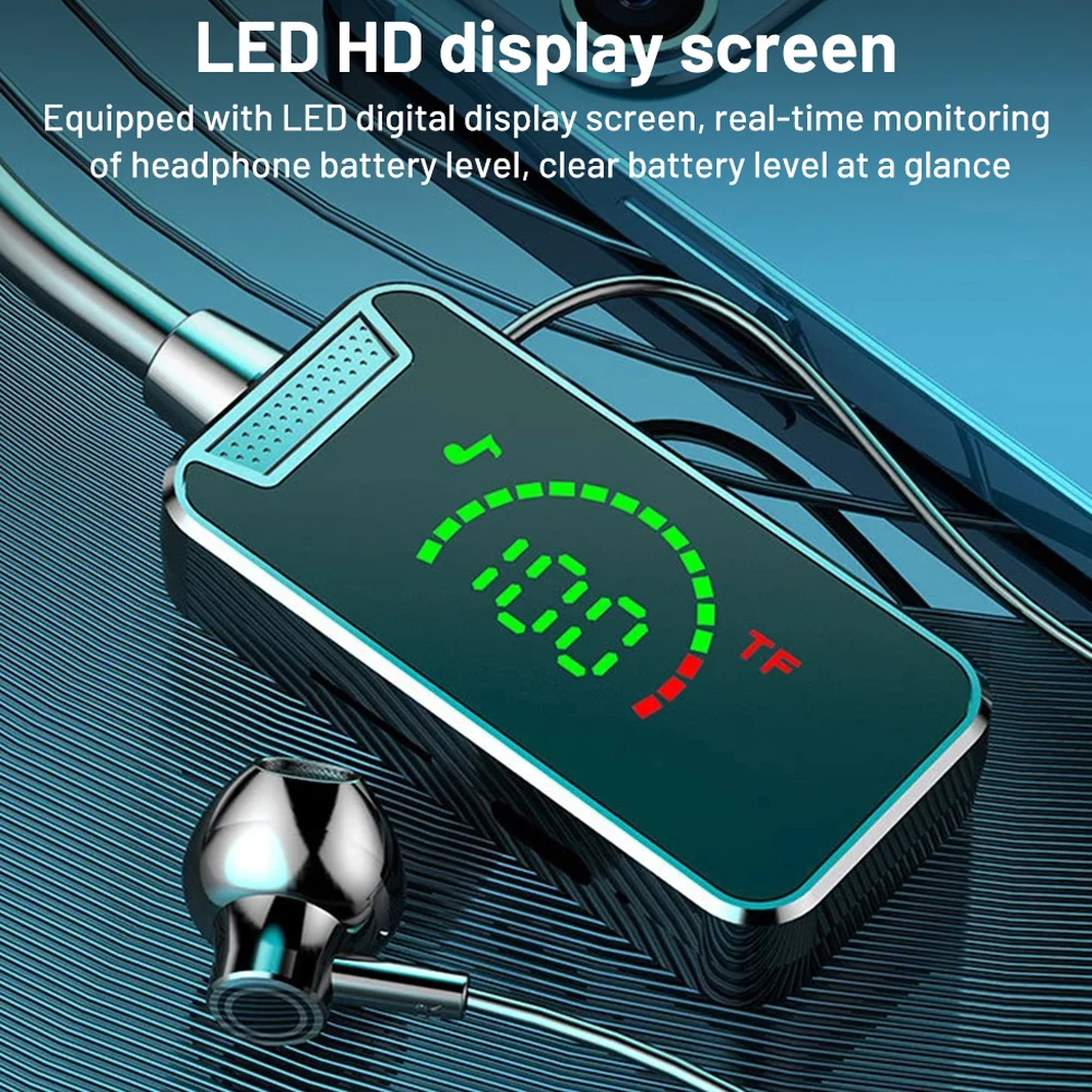 Auriculares inalámbricos Bluetooth 5,4 deportivos impermeables con banda para el cuello, auriculares magnéticos con pantalla LED, auriculares estéreo HiFi, auriculares de música para teléfono inteligente