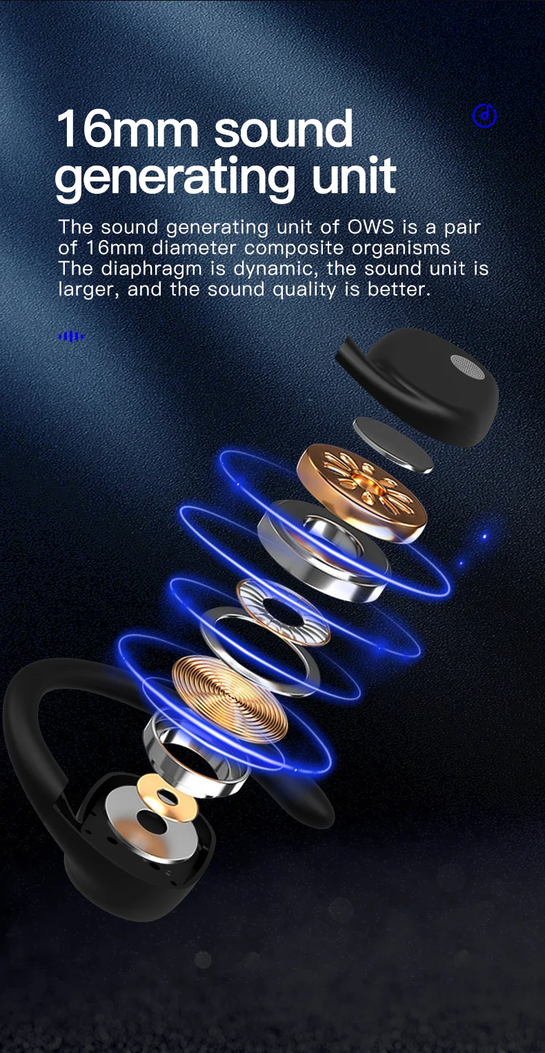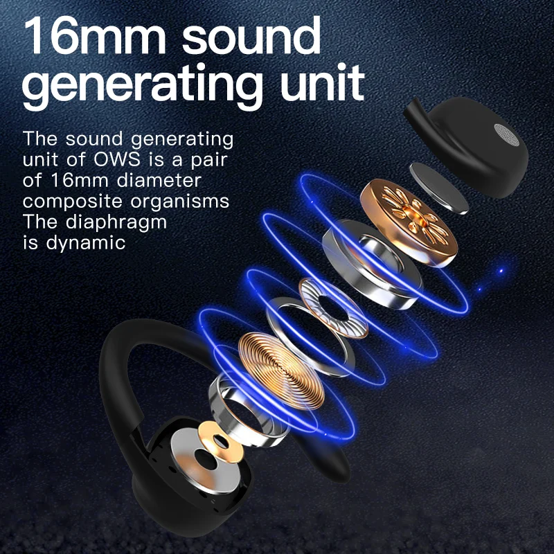 4. La unidad generadora de sonido de OWS es una bobina dinámica de biomembrana compuesta de 16mm de diámetro. La unidad generadora de sonido es más grande y la calidad del sonido es mejor.