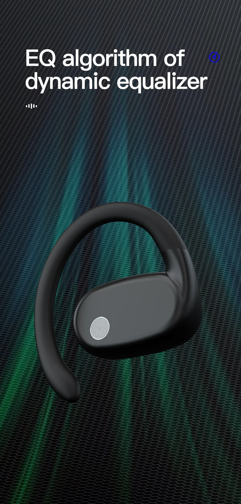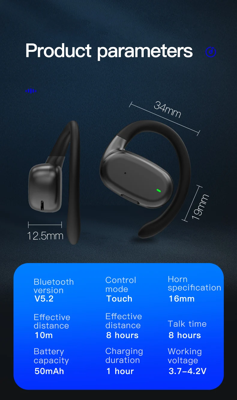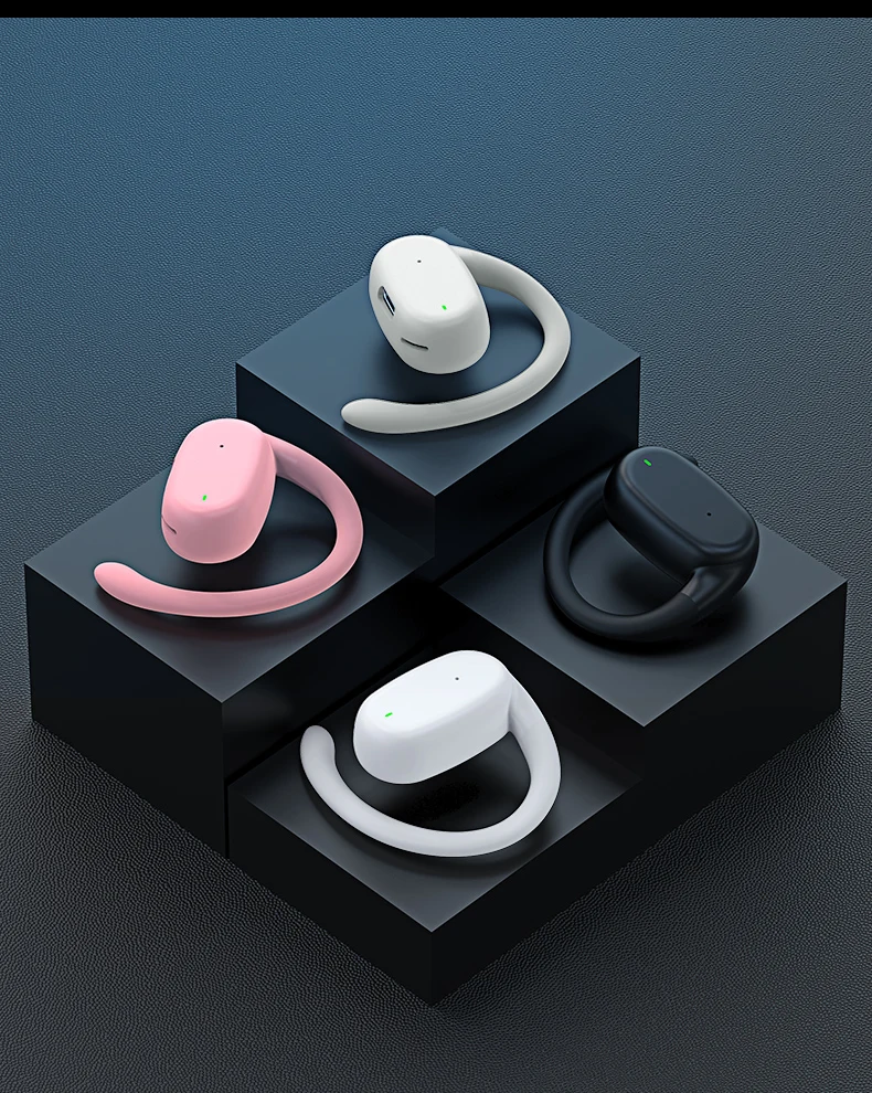 1. Totalmente abierto, diseño sin orejas se ajusta a la ergonomía. El gancho para la oreja suave de TPU tiene un soporte multipunto, que es cómodo y cómodo de llevar.