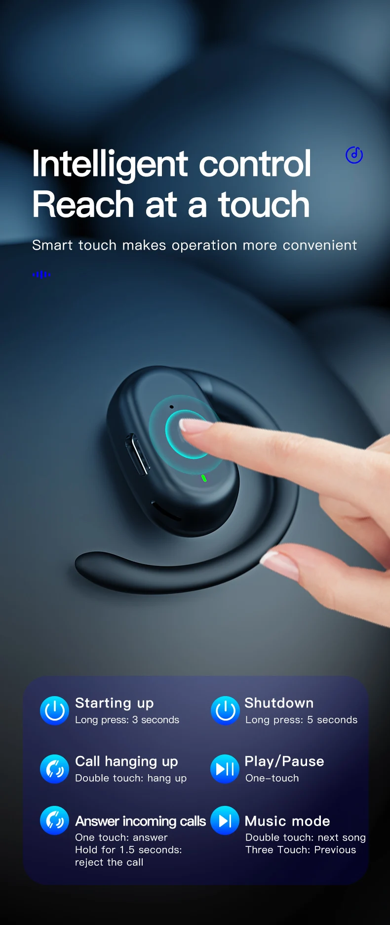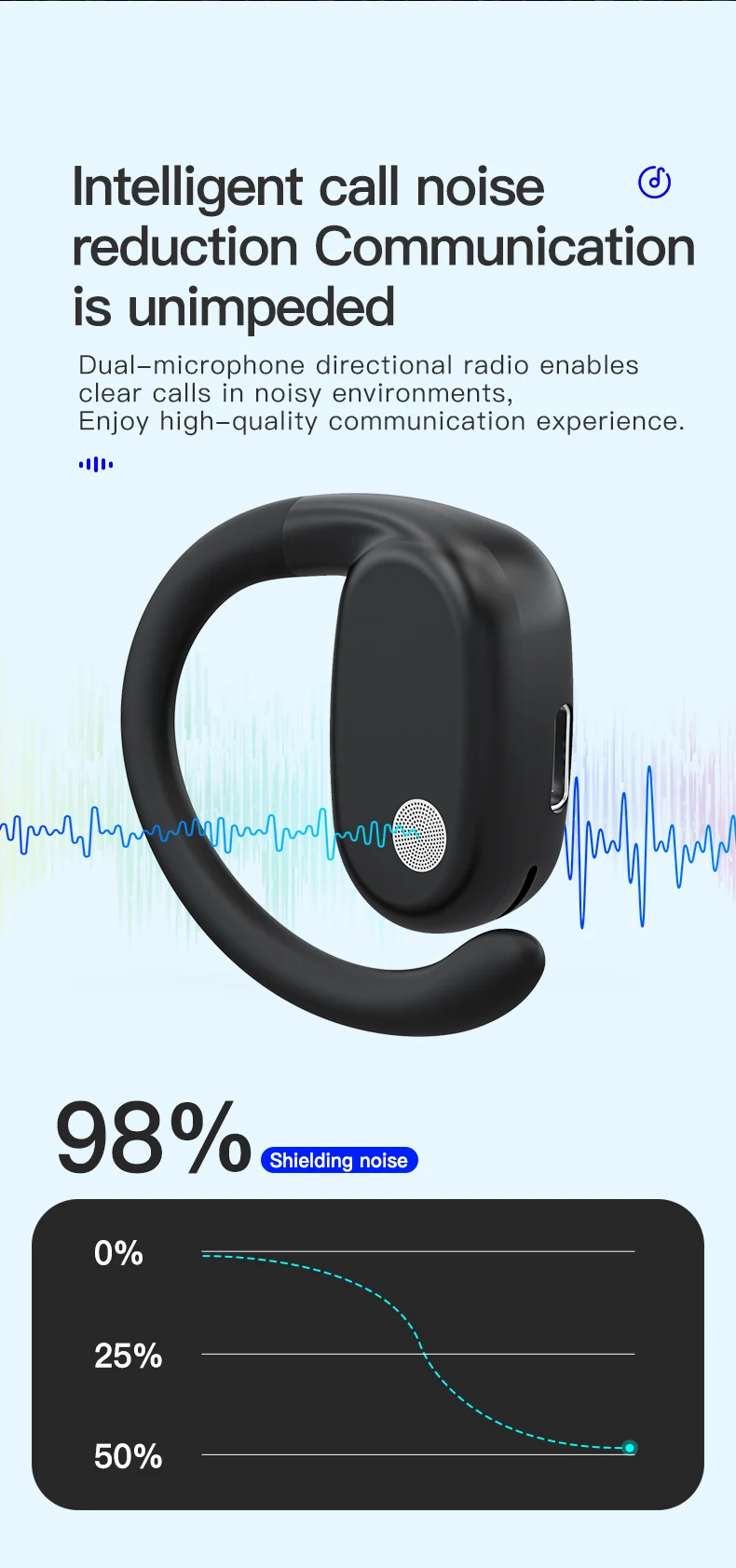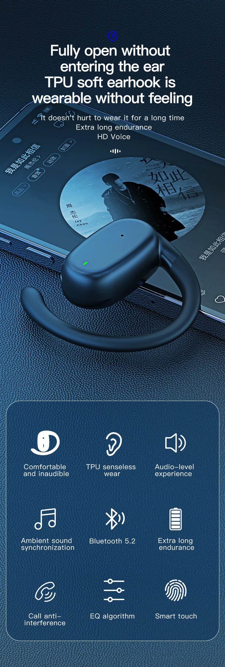 Comprar Auriculares inalámbricos con Bluetooth, audífonos de conducción de aire, gancho para la oreja, micrófono HD abierto, HiFi, música, deporte, negocios