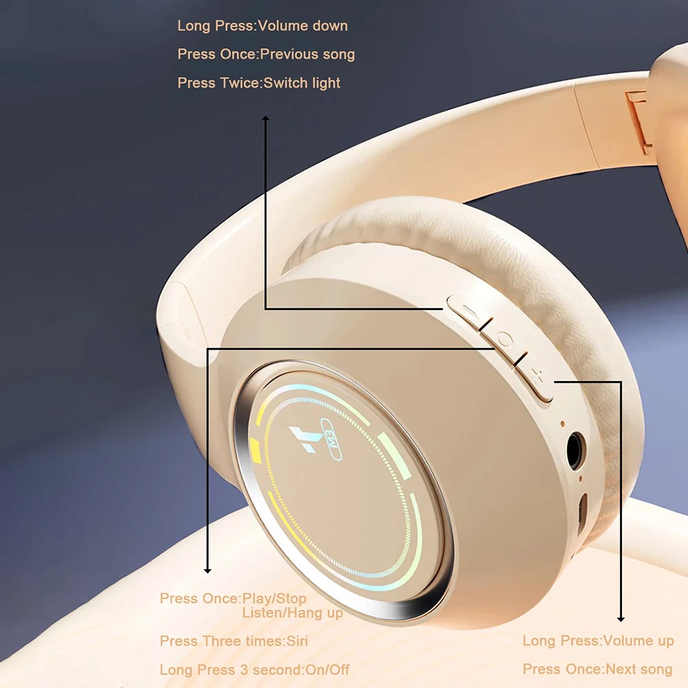 M3 Auriculares Bluetooth Auriculares inalámbricos con micrófono HiFi Bass Stereo Music Gaming Cancelación de ruido Auriculares grandes plegables