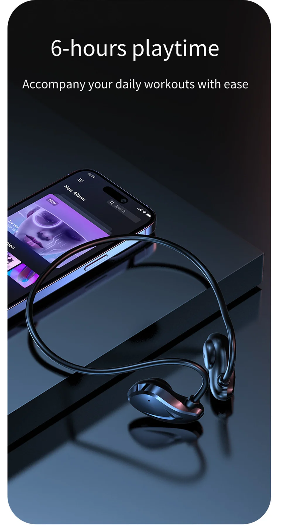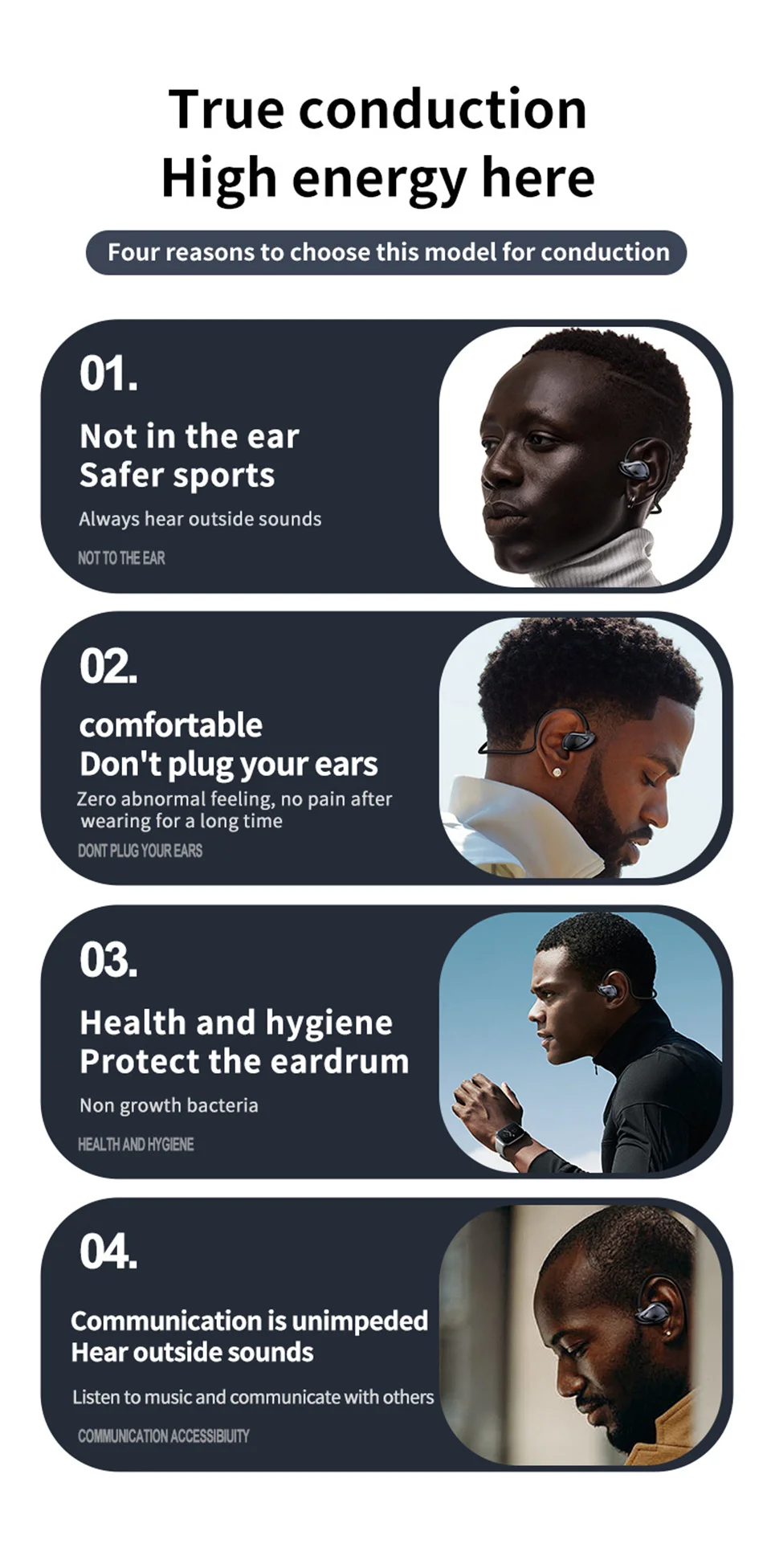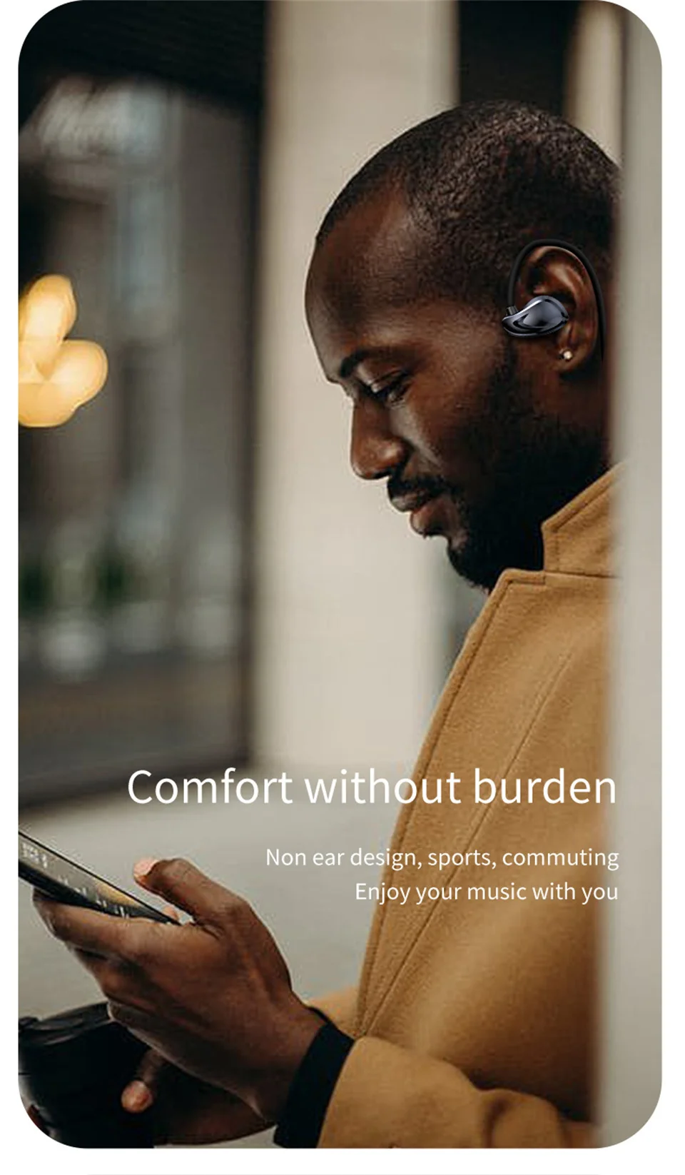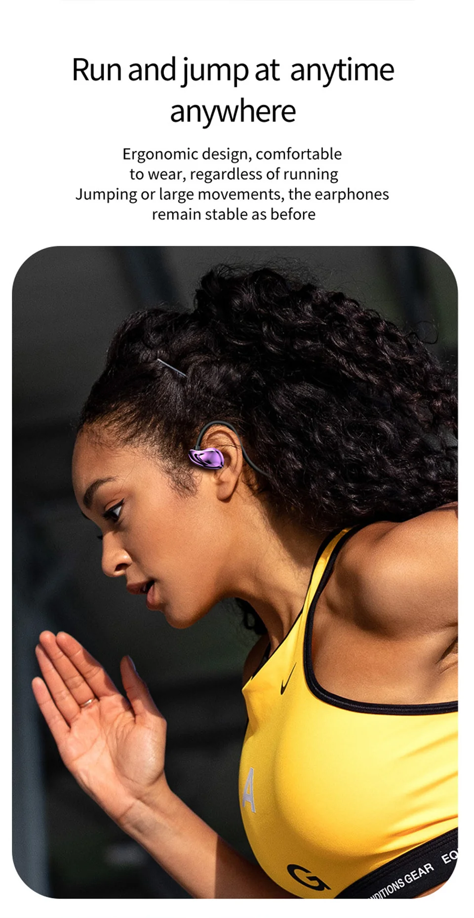 ♬Uso indoloro:Los auriculares no están diseñados para estar en el oído y se transmiten a través del aire, lo que reduce la sensación de vibración del oído y le permite sumergirse en la alegría del ejercicio.