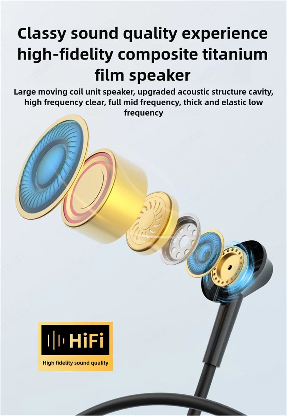 ♪ Altavoz de diafragma compuesto de titanio:Altavoz de unidad dinámica grande, cavidad de estructura acústica mejorada, alta frecuencia clara, frecuencia media completa, baja frecuencia gruesa y elástica.