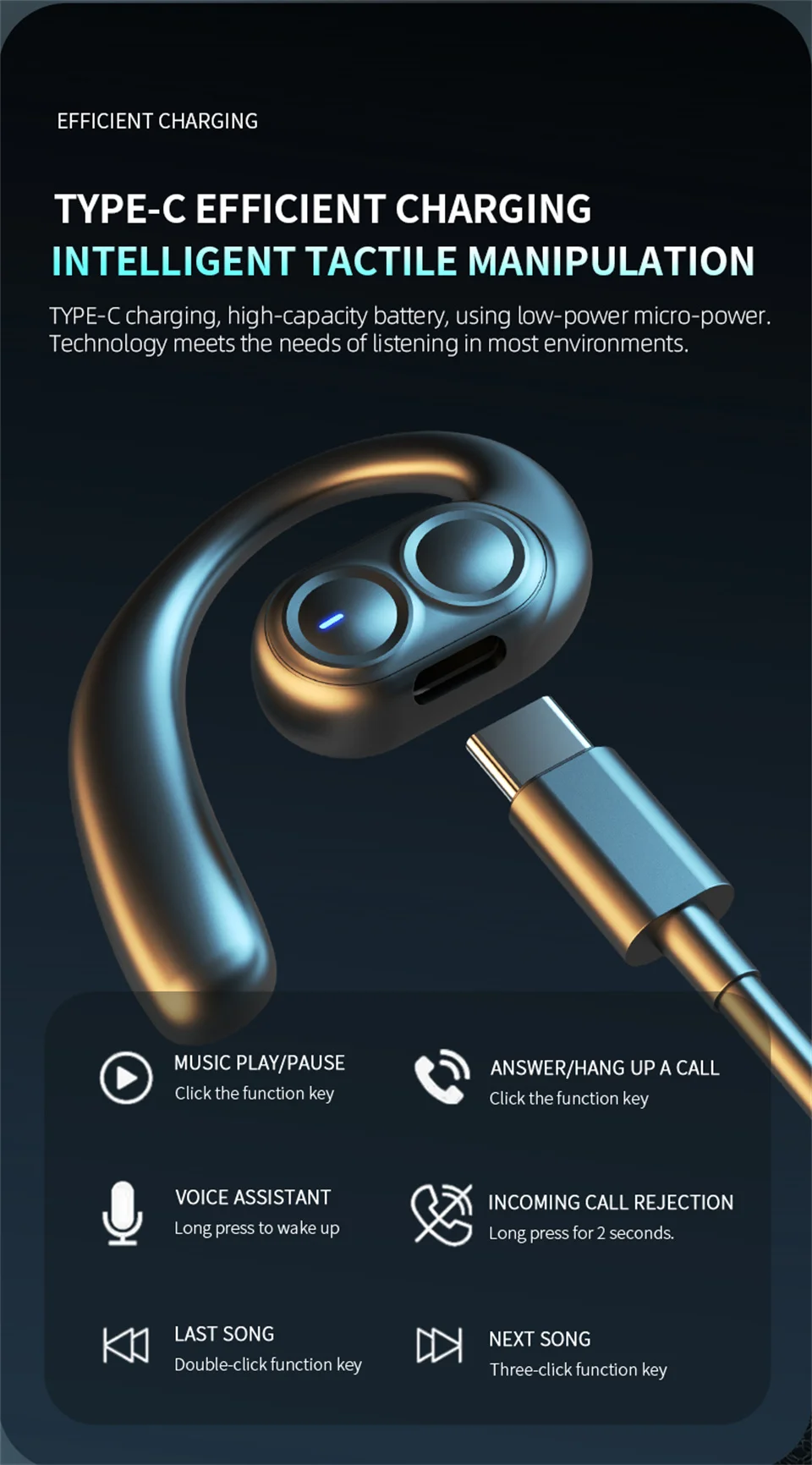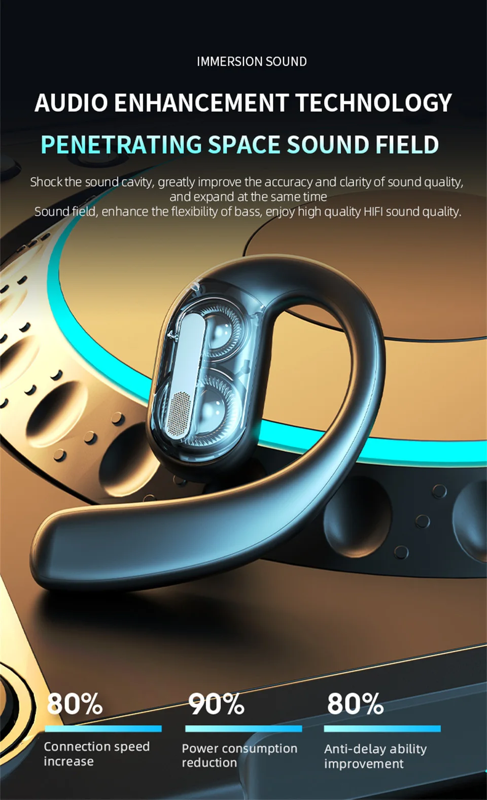 Comprar Auriculares inalámbricos con Bluetooth, cascos completamente abiertos, conducción de aire, gancho para la oreja, manos libres, cancelación de ruido, audífonos deportivos