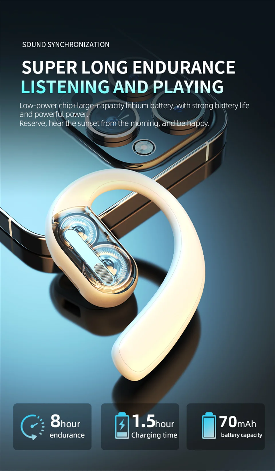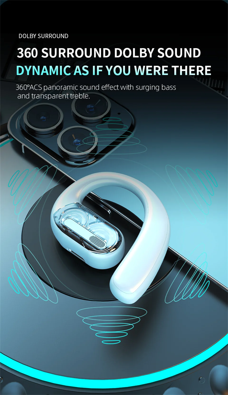 ♬Nuevo diseño abierto OWS:Haga que la experiencia de audio sea más clara y rica.También libera tus oídos y podrás escuchar sonidos ambientales y escuchar música sin afectar tu conversación con las personas que te rodean.